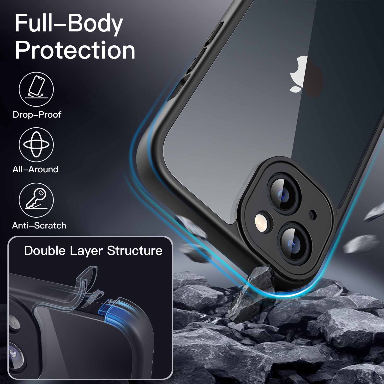 [Crystal Clear PC Back] Allow you to admire the exquisite logo and original beauty of your phone through the clear back, which will not get yellowing over the time