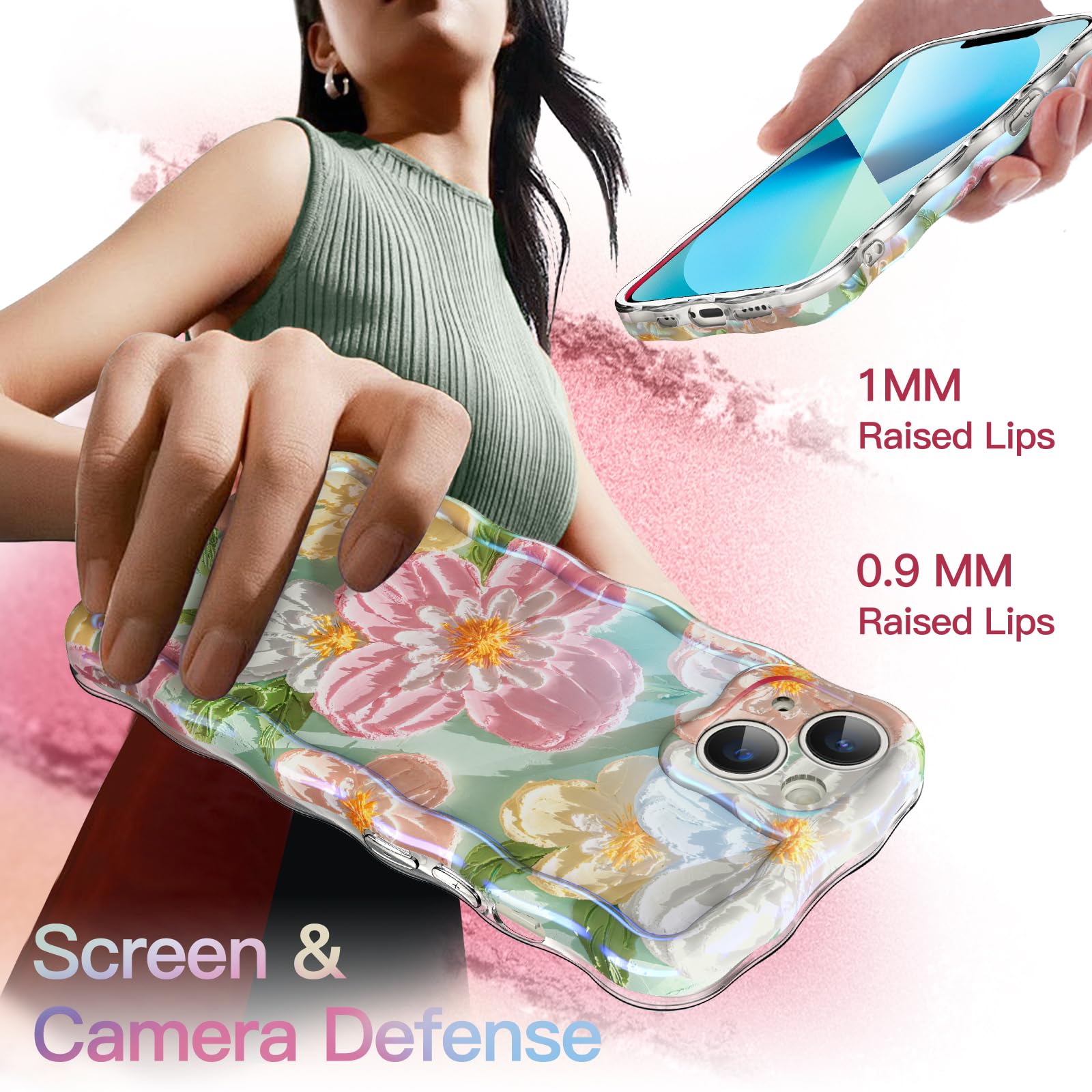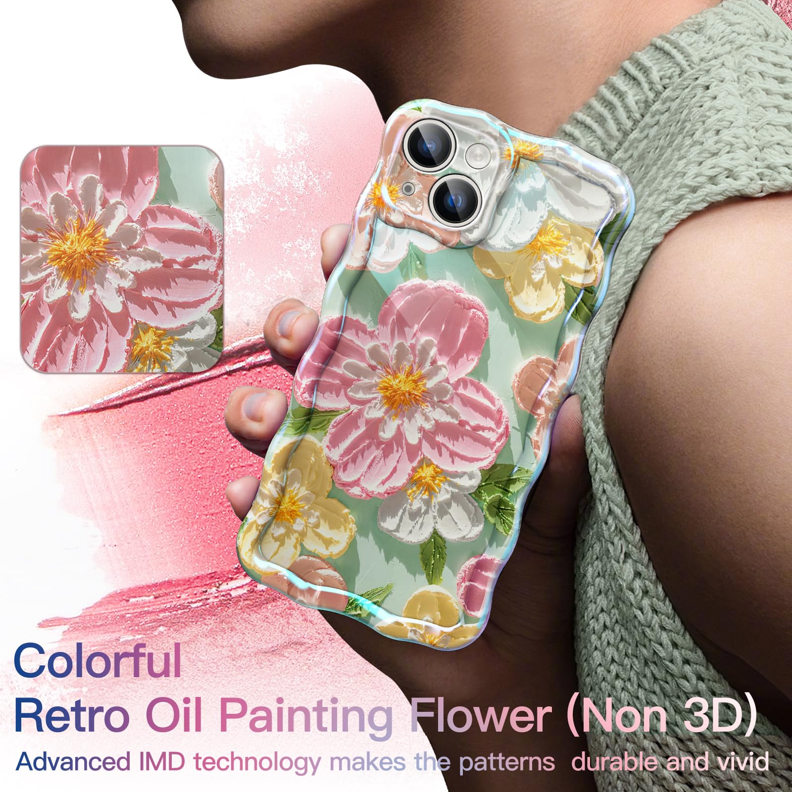 [Beautiful Oil Painting Patterns] With IMD technology (non 3D), the beautiful flower oil painting pattern radiates laser luster and maintains the pearl-like sparkling luster for a long time without fading. Keep your phone beautiful and fashionable