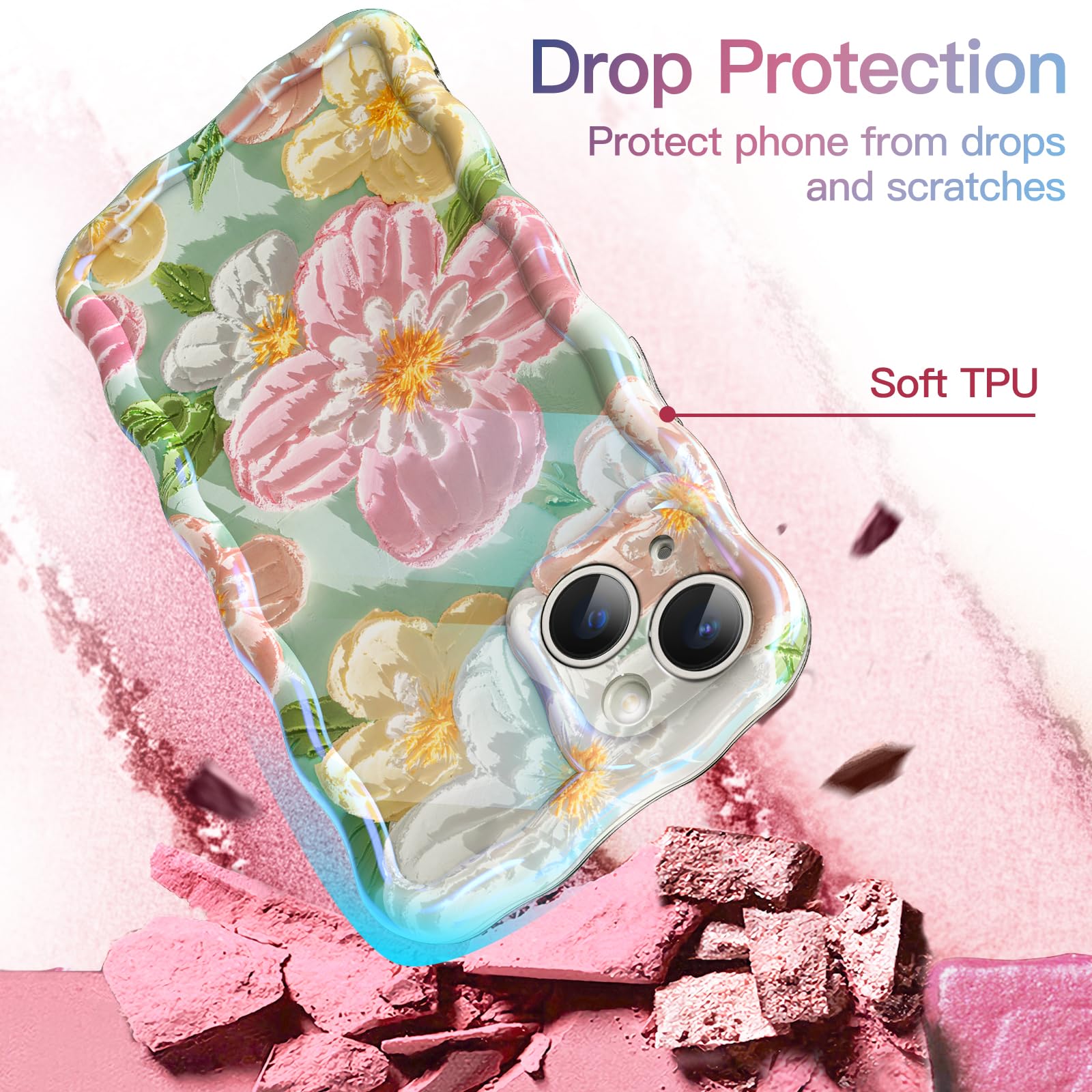 The iPhone case is a stylish and protective accessory that perfectly blends functionality with aesthetic appeal. Featuring a colorful retro oil painting floral design. this case showcases a vibrant pink flower pattern that adds a touch of elegance and charm to your phone. The curly wave frame enhances the overall look while providing additional grip. Made from high-quality TPU material. this soft protective cover ensures your iPhone 13 is shielded from scratches. drops. and everyday wear and tear. Designed with precision. it offers easy access to all ports. buttons. and cameras. ensuring full functionality without removing the case. Ideal for women and girls. this case not only protects your device but also adds a fashionable statement. making it a perfect blend of style and durability for your iPhone 13. It is a decent price at $14.