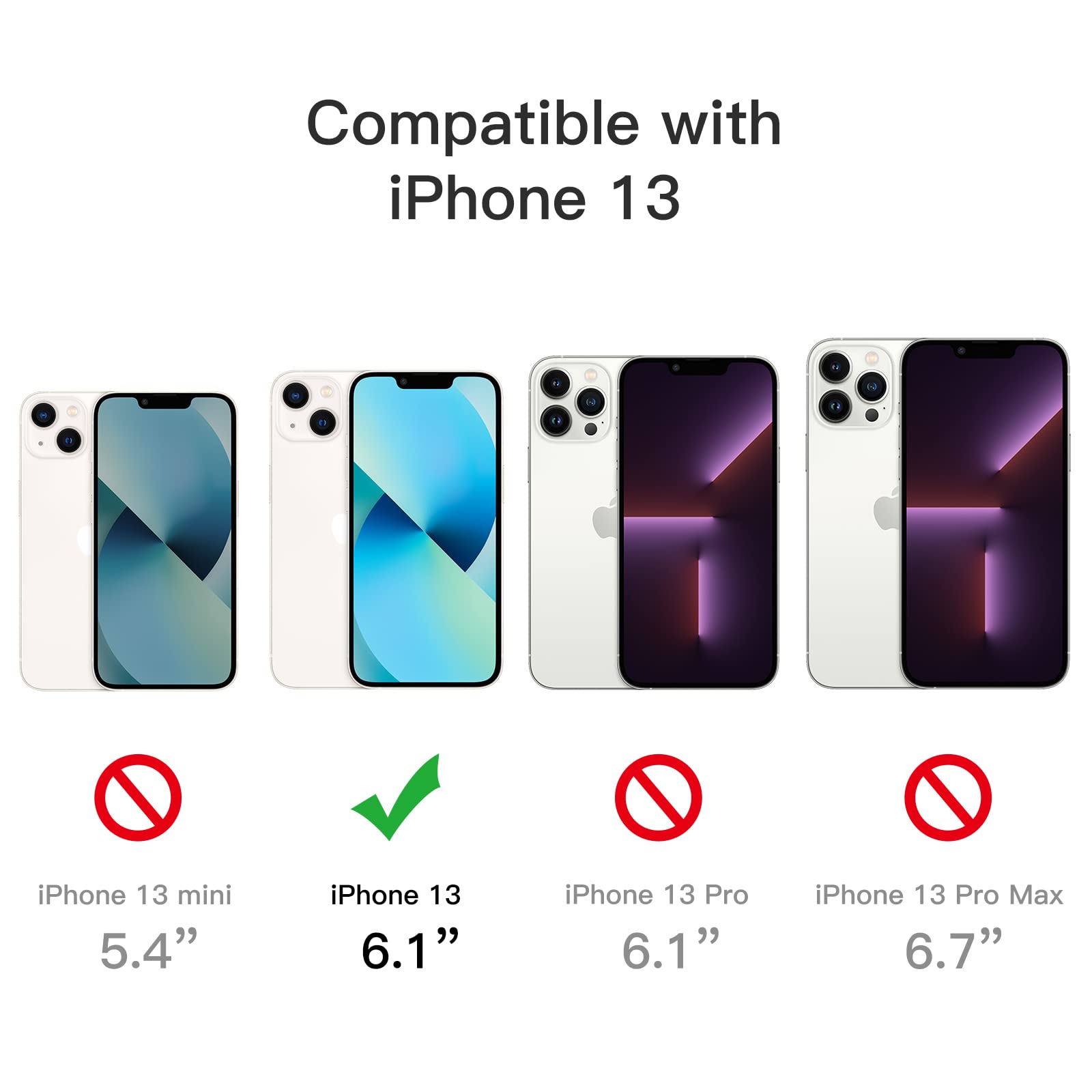 [5-in-1 Full Protection] Exclusively fit iPhone 13 6.1-inch. This bumper case with 2-pack tempered glass screen protectors and 2-pack camera lens protectors provides all-around protection for your phone