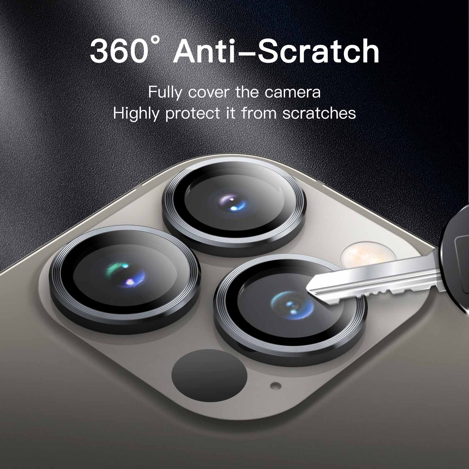 [Comprehensive Protection] Built with premium aluminum alloy metal ring and 9H hardness tempered glass camera lens cover, highly protect the camera lens against unwanted daily scratches and abrasions caused by keys, coins or other sharp objects