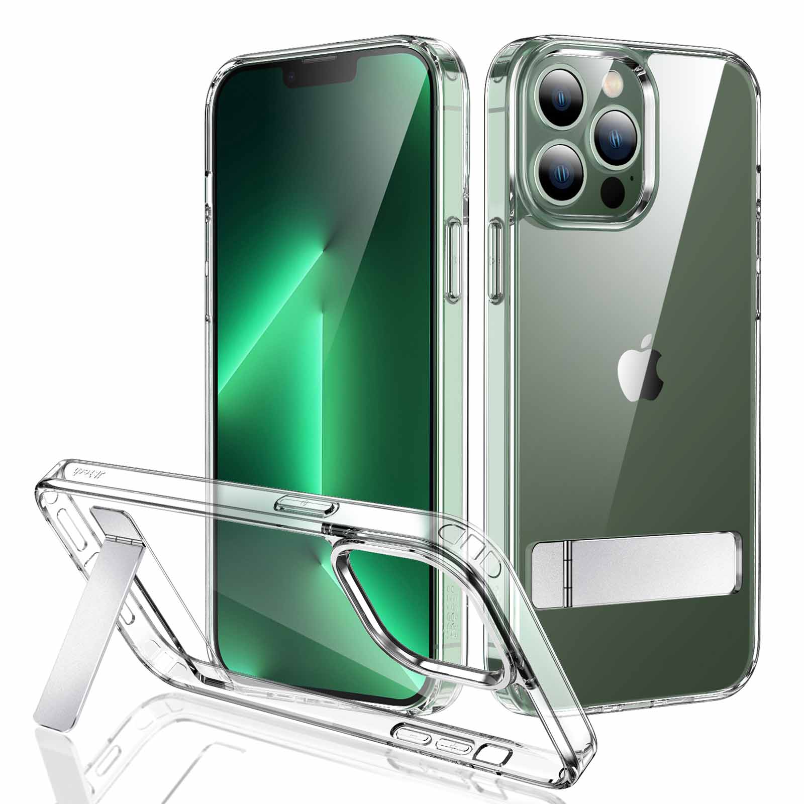 JETech Kickstand Case for iPhone 13 Pro, 6.1-Inch, Support Wireless Charging, Slim Shockproof Bumper Phone Cover, 3-Way Metal Stand