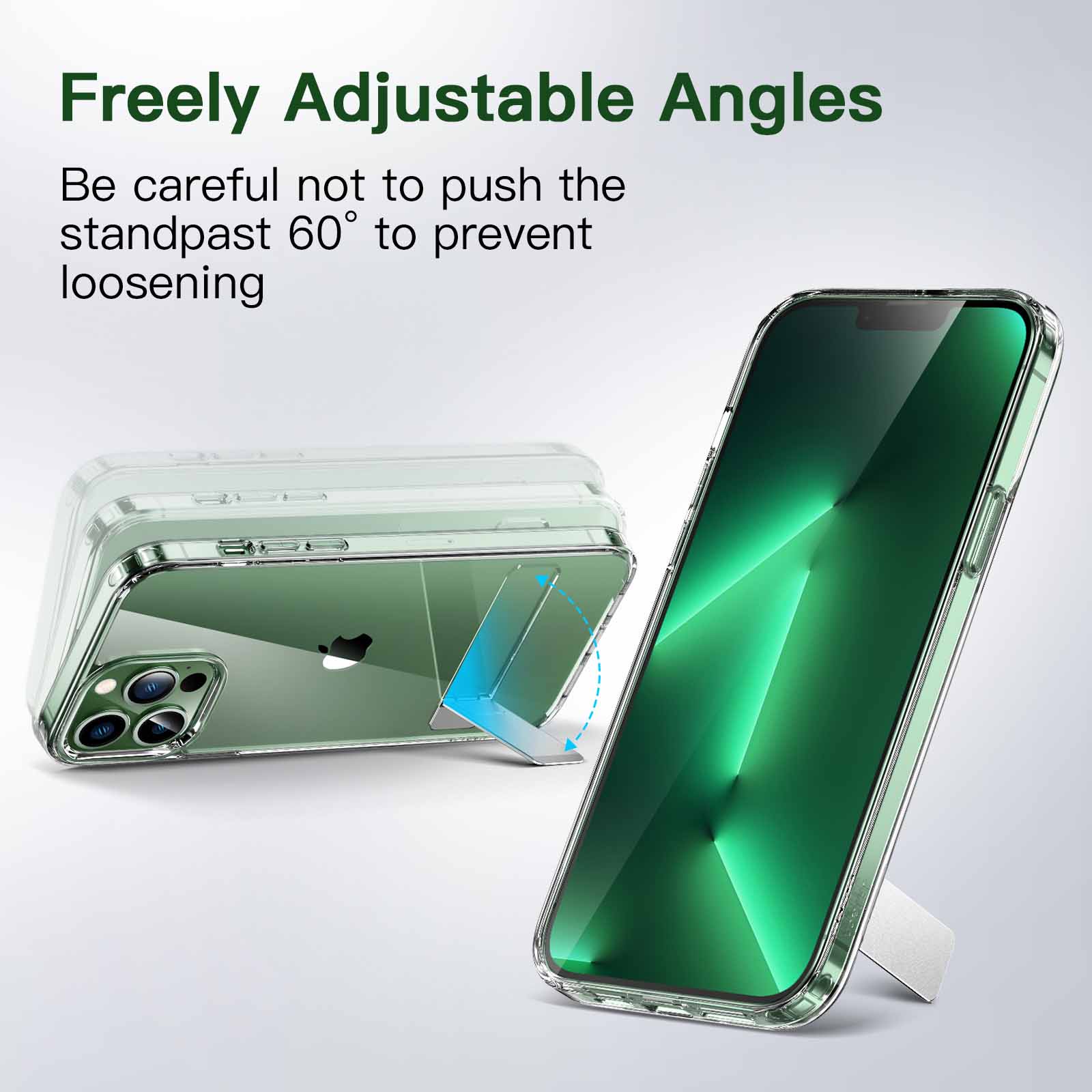 [Built-in Stand] Designed for iPhone 13 Pro Max, 6.7-Inch. The metal stand stays smooth and flat to the cover back. Support wireless charging