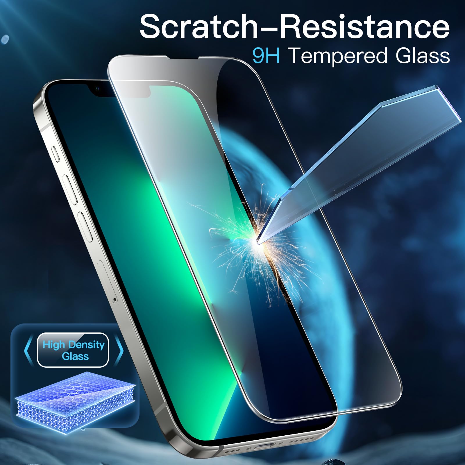 [2-in-1 High Protection] Exclusively designed for iPhone 13 Pro Max 6.7-inch. Come with a protective clear case and 2-pack full coverage tempered glass screen protectors. Offer comprehensive protection to your phone