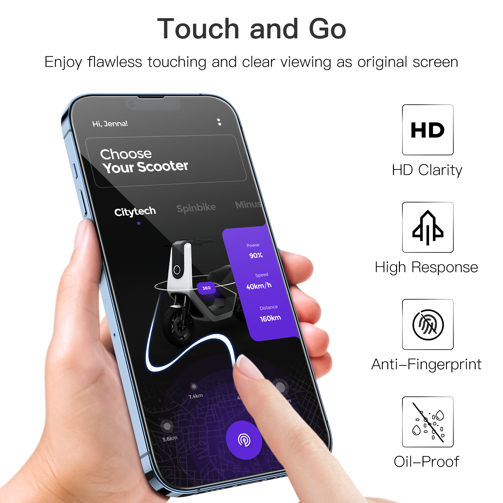 • [Fingerprint & Oil-Proof] The hydrophobic and oleophobic coating prevents fingerprints, oil residue and sweat from gathering on the screen. Always maintain a clean screen environment for you