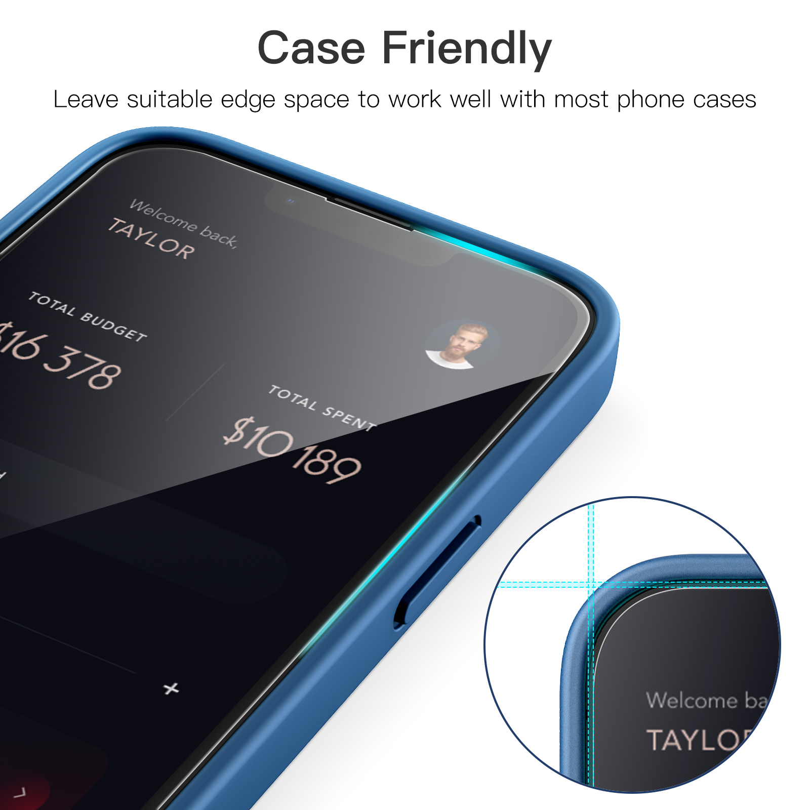 • [Case-Friendly] There is enough edge space around the borders for your case to wrap around the edges of your mobile. Compatible with most phone cases