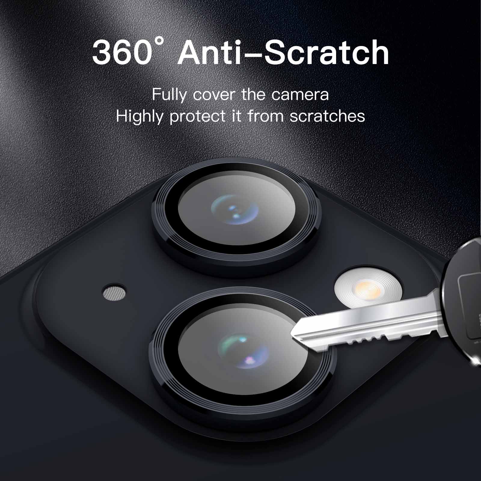 [Comprehensive Protection] Built with premium aluminum alloy metal ring and 9H hardness tempered glass camera lens cover, highly protect the camera lens against unwanted daily scratches and abrasions caused by keys, coins or other sharp objects