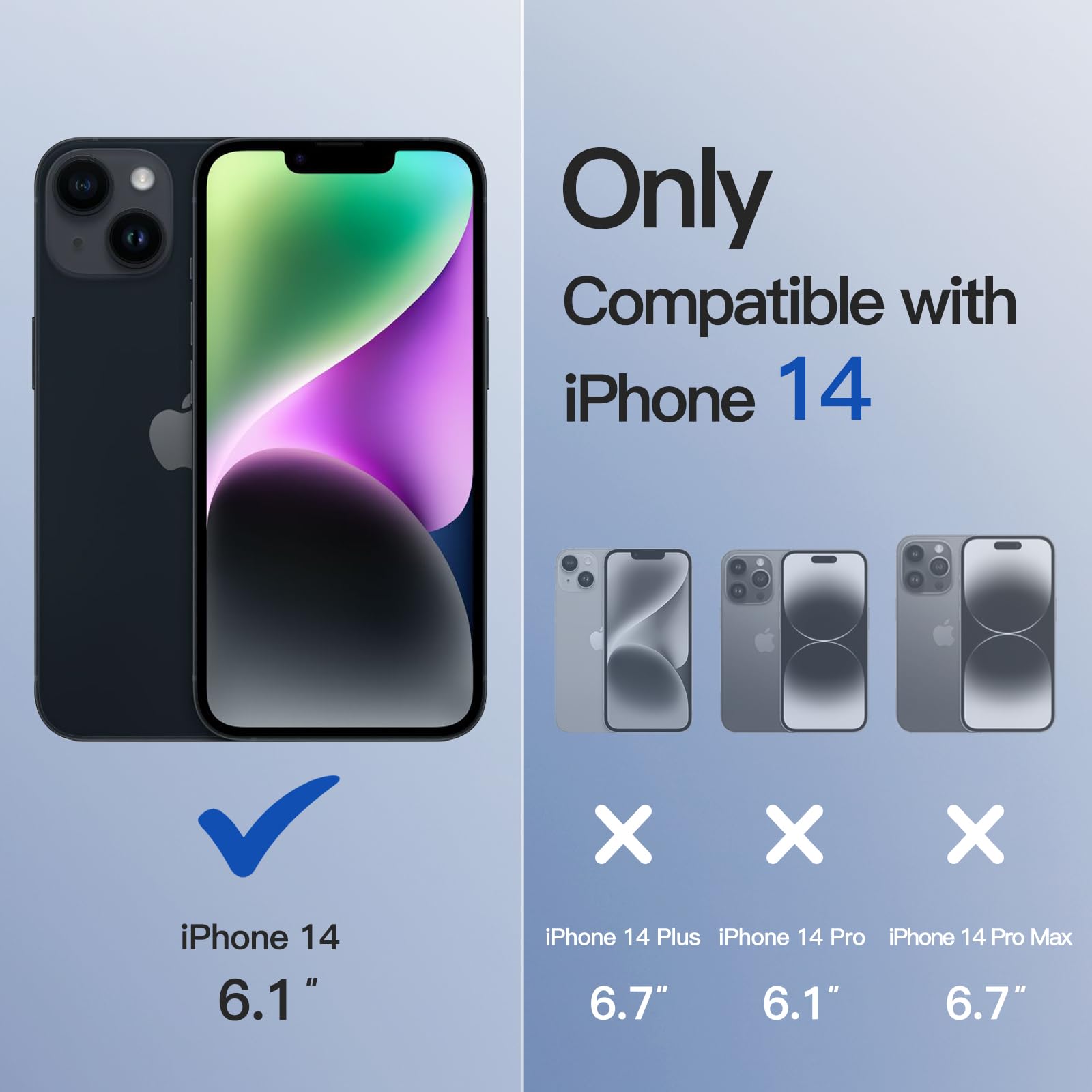 [Perfectly Fit] Designed for iPhone 14 6.1 inch. NOTE: Not for iPhone 14 Plus / 14 Pro / 14 Pro Max. The perfectly aligned cutouts allow full access to the camera, speaker, buttons and other ports