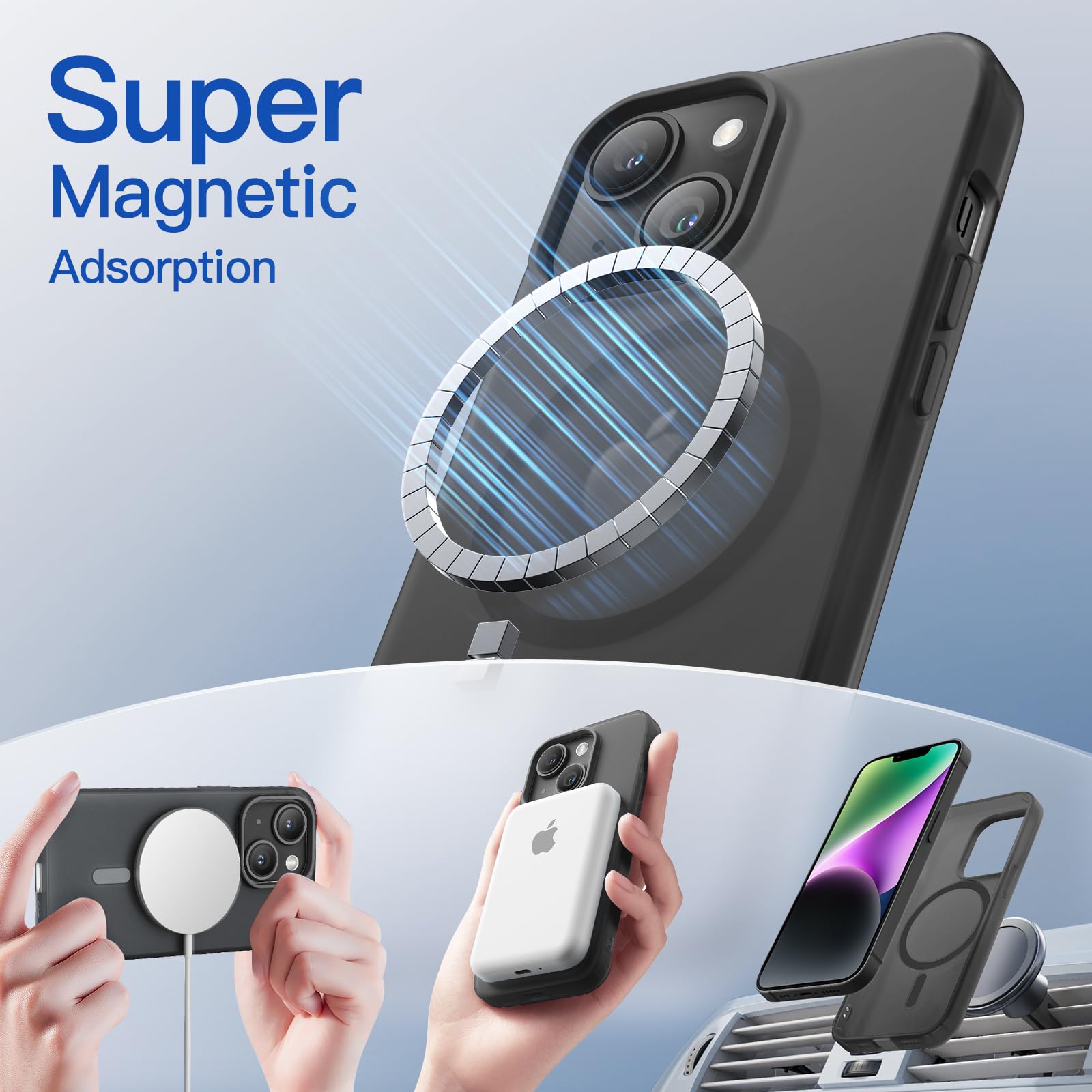 [Super Magnetic Adsorption] Attach to the charger magnetically and strongly. Once snap on, never sliding. Compatible with MagSafe accessories, such as wallet, ring holder and power bank