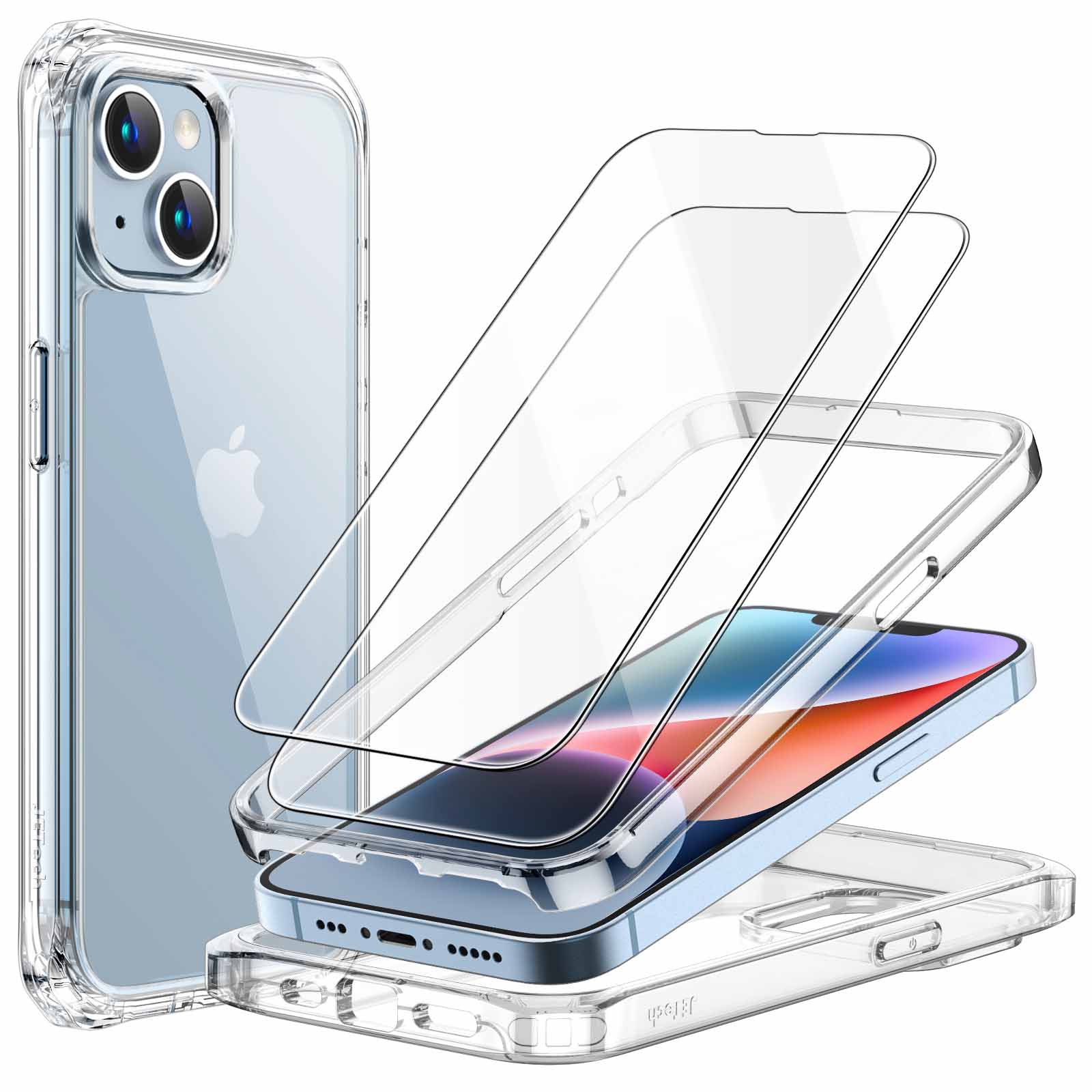 48 reviews for JETech Case for iPhone 14 6.1-Inch with 2-Pack Tempered Glass Screen Protector, 360 Full Body Shockproof Bumper Phone Cover Protective Clear Back