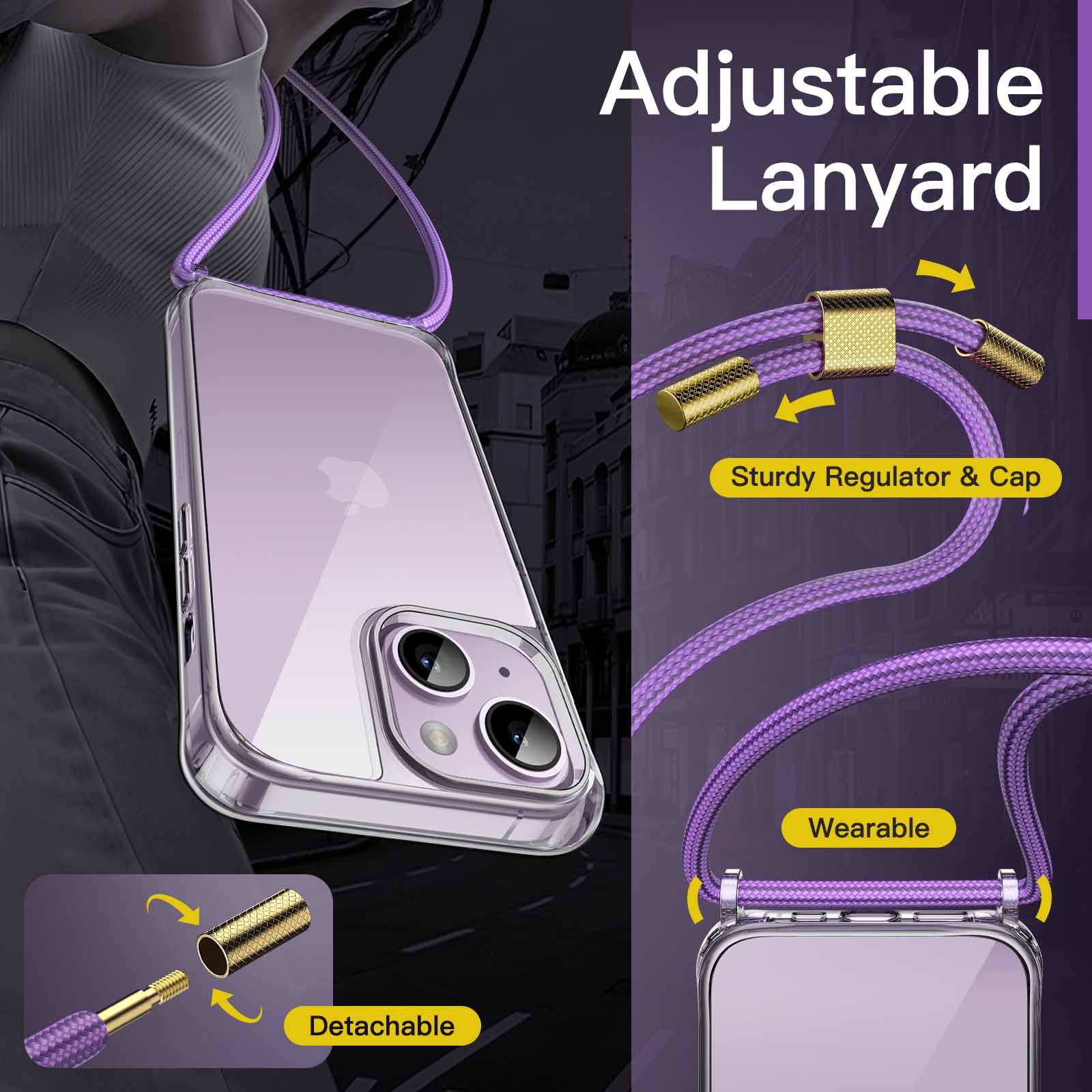 [Adjustable & Easy to Use] A metal adjuster allows you to adjust the lanyard of the cover into any shape and length, such as a crossbody lanyard strap, shoulder strap and normal neck strap. Free your hands so that you can do more other things while keeping your phone safe with you