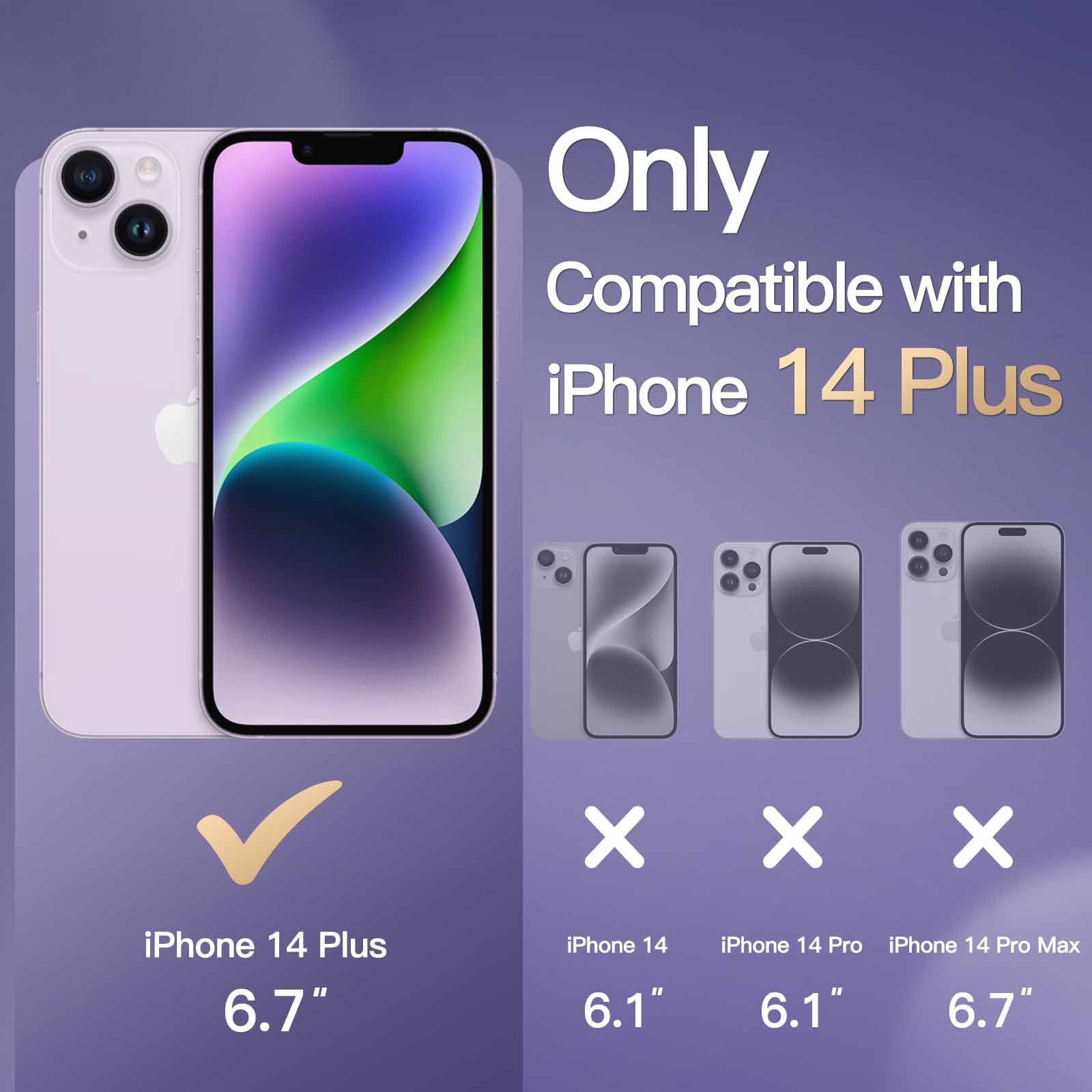 [Clear Protective Case] Only compatible with iPhone 14 Plus 6.7-inch. The whole clear body shows off original beauty of your device. Never yellowing hard PC back for long-lasting clarity with superior scratch-resistance