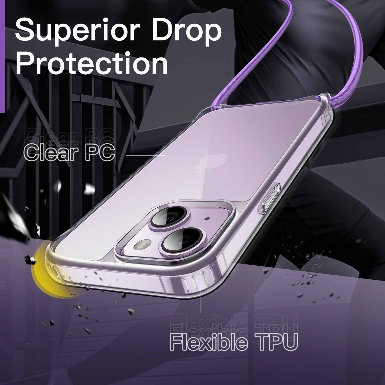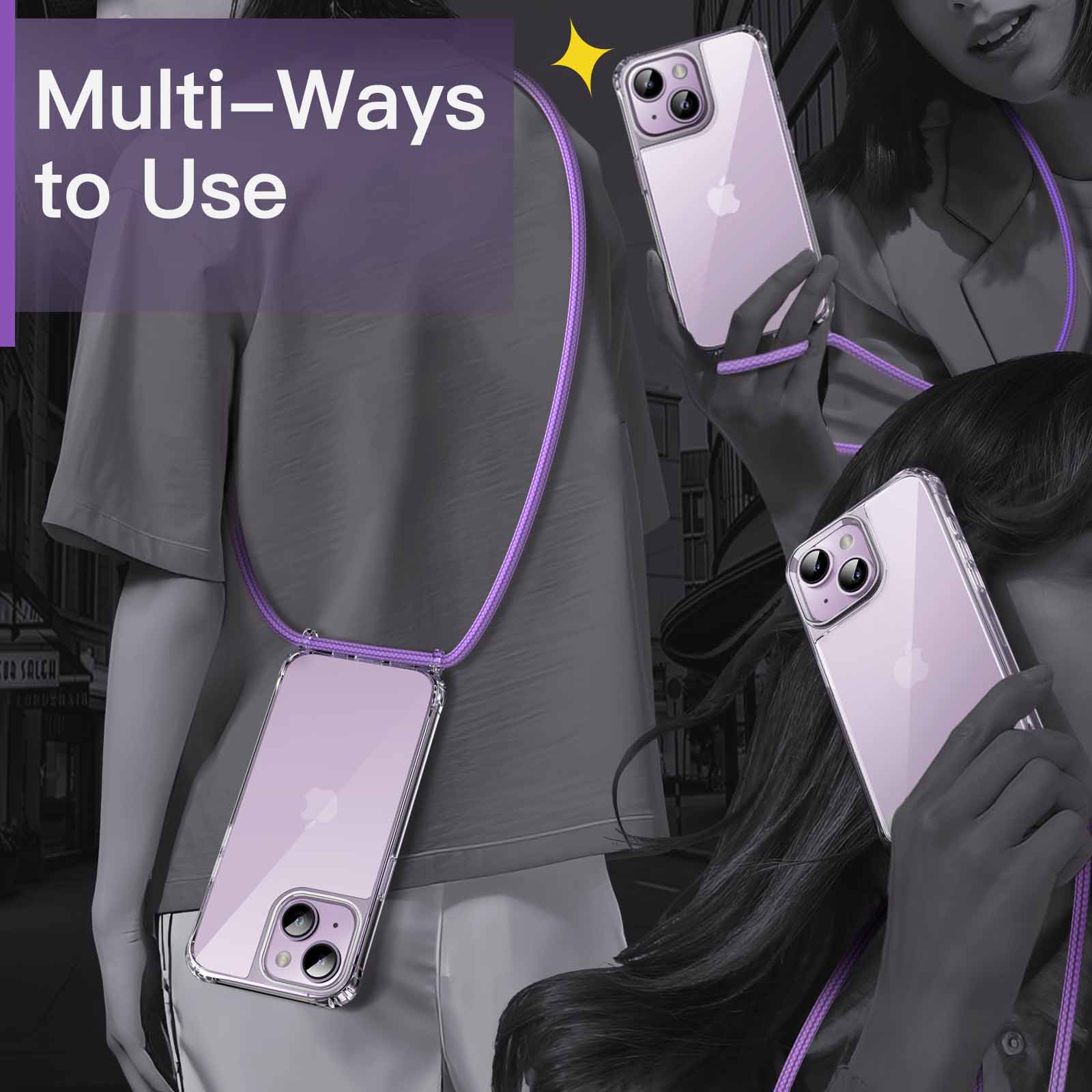 [Shock-Absorption] Built with a flexible TPU frame and a hard PC back, this transparent neck cord phone cover with reinforced corners perfectly protects your phone from accidental scratches and drops
