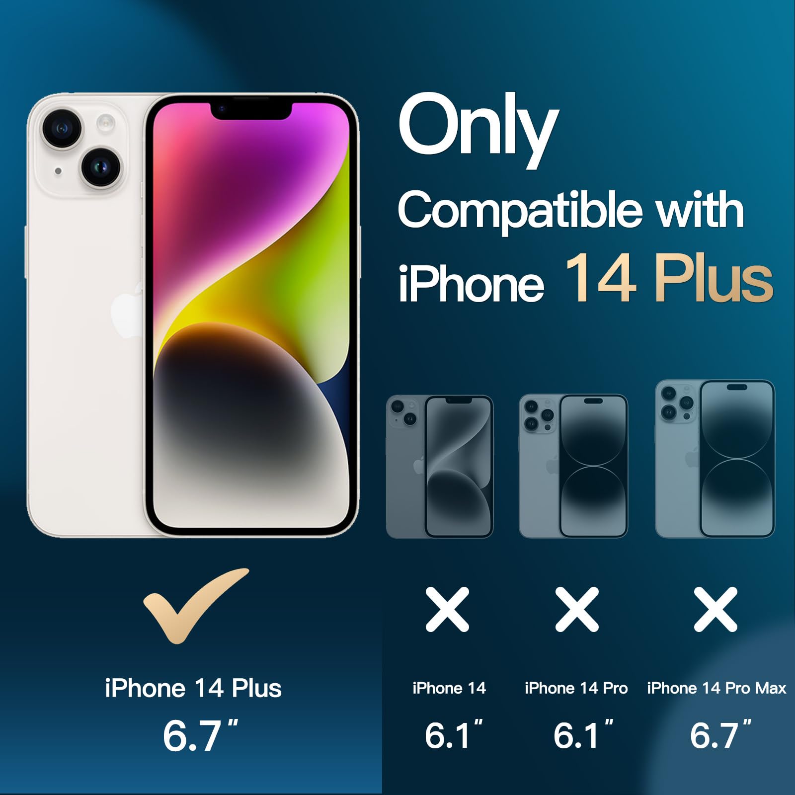 [3-in-1 High Protection] Tailor-made for iPhone 14 Plus 6.7-inch. You will receive a protective clear case and 2 pack tempered glass screen protectors, bringing comprehensive protection to your device