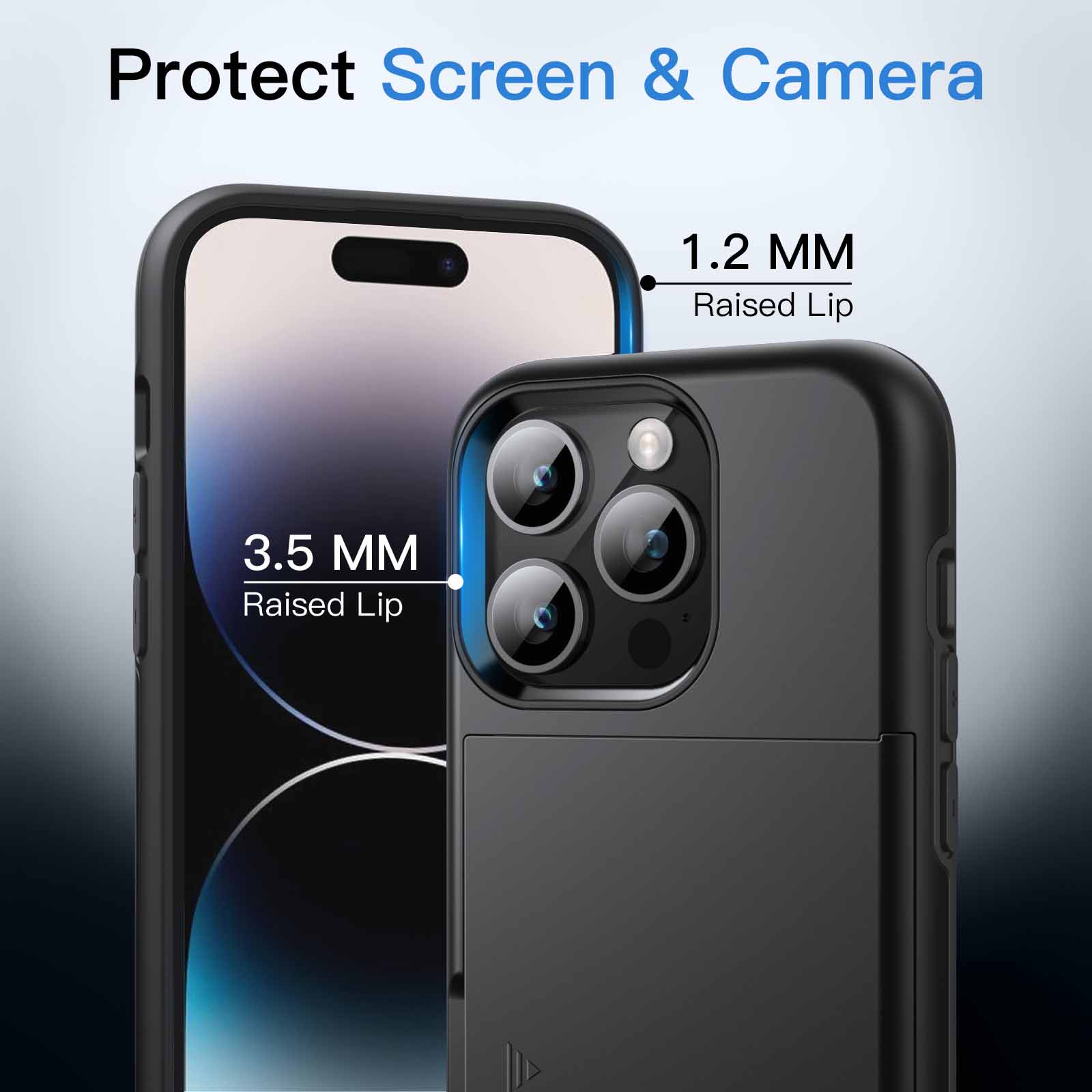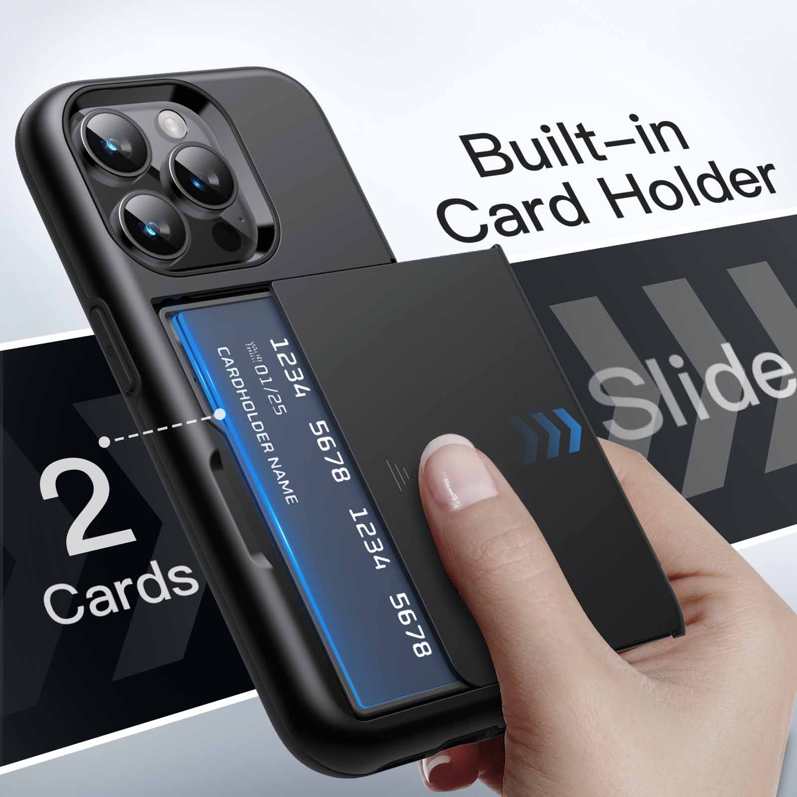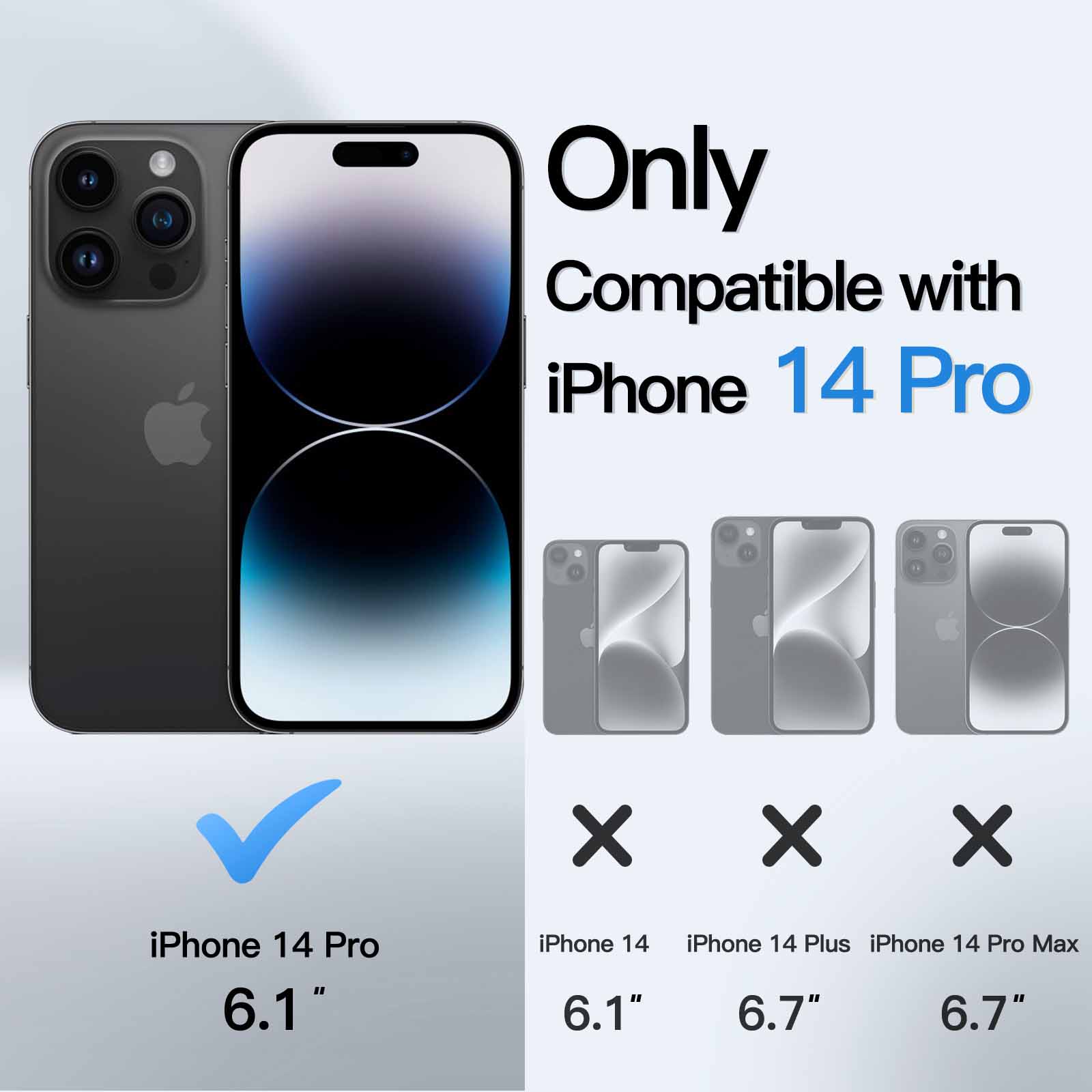 [Built-in Card Holder] Precisely fit iPhone 14 Pro 6.1-inch. The card holder on the back can hold up to 2 essential cards securely. Always keep your credit card, debit card, ID card or driver’s license at hand without carrying a bulky wallet with you