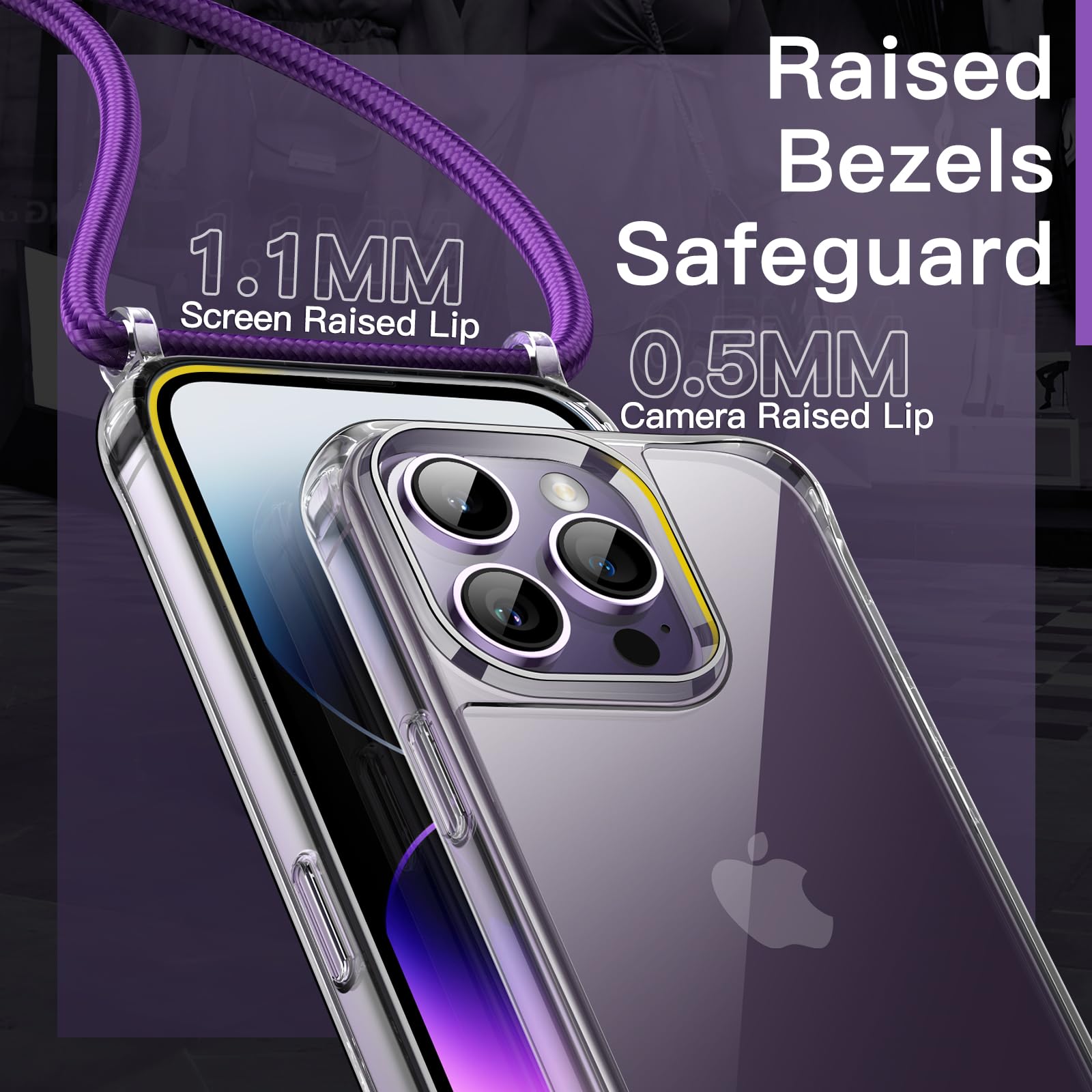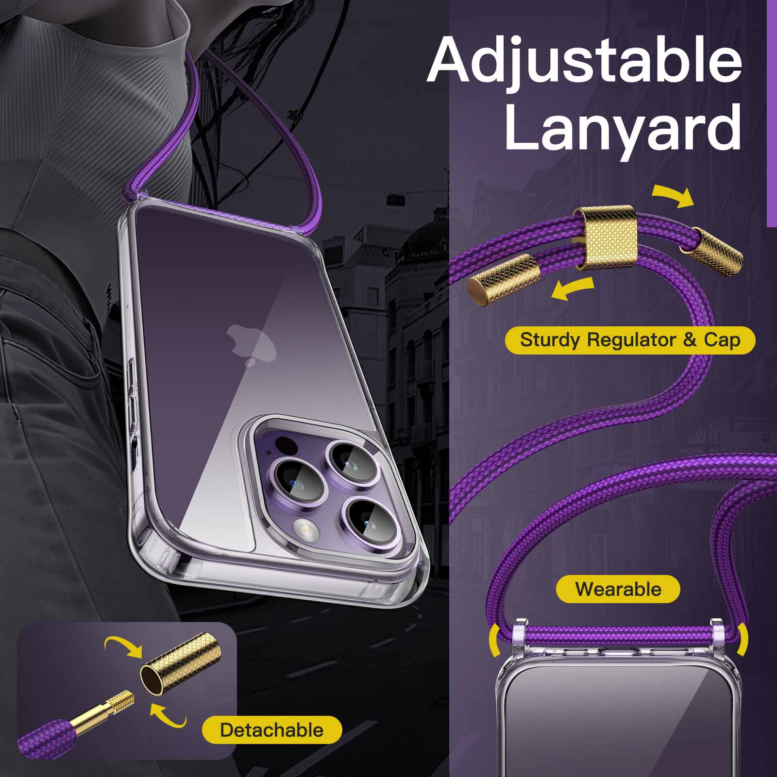 JETech Crossbody Case for iPhone 14 Pro 6.1-Inch with Adjustable Lanyard Strap, Clear Transparent Anti-Yellowing Shockproof Protective Phone Cover with Neck Cord