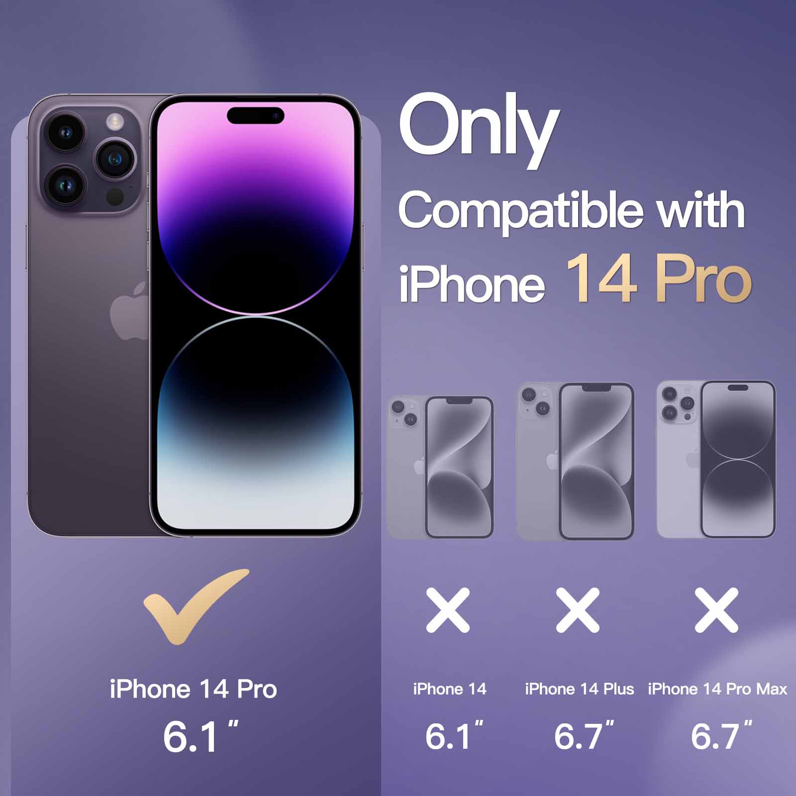 [Clear Protective Case] Only compatible with iPhone 14 Pro 6.1-inch. The whole clear body shows off original beauty of your device. Never yellowing hard PC back for long-lasting clarity with superior scratch-resistance