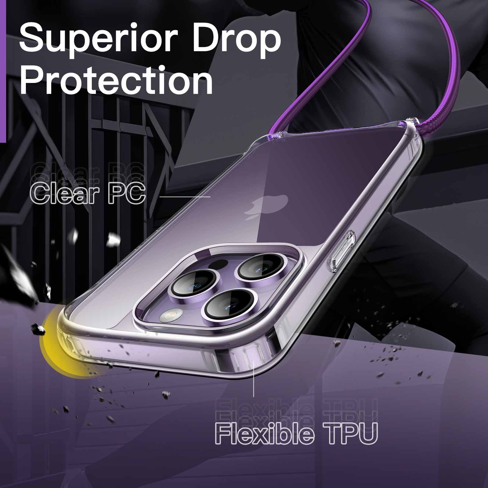 [Shock-Absorption] Built with a flexible TPU frame and a hard PC back, this transparent neck cord phone cover with reinforced corners perfectly protects your phone from accidental scratches and drops
