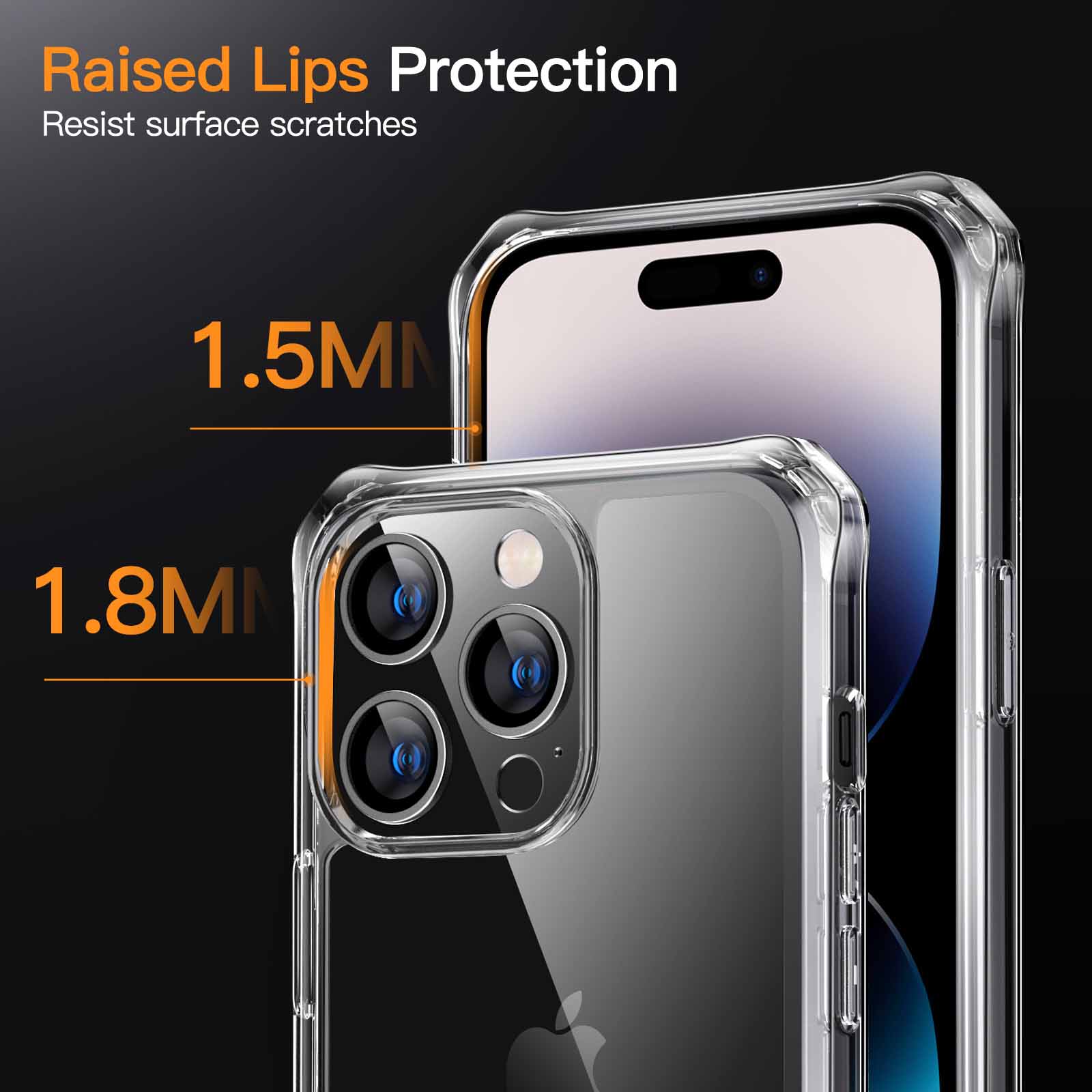 [Clear Back Cover] The back of the phone case is highly transparent to show the original beauty of your phone. Compatible with iPhone 14 Pro 6.1-Inch