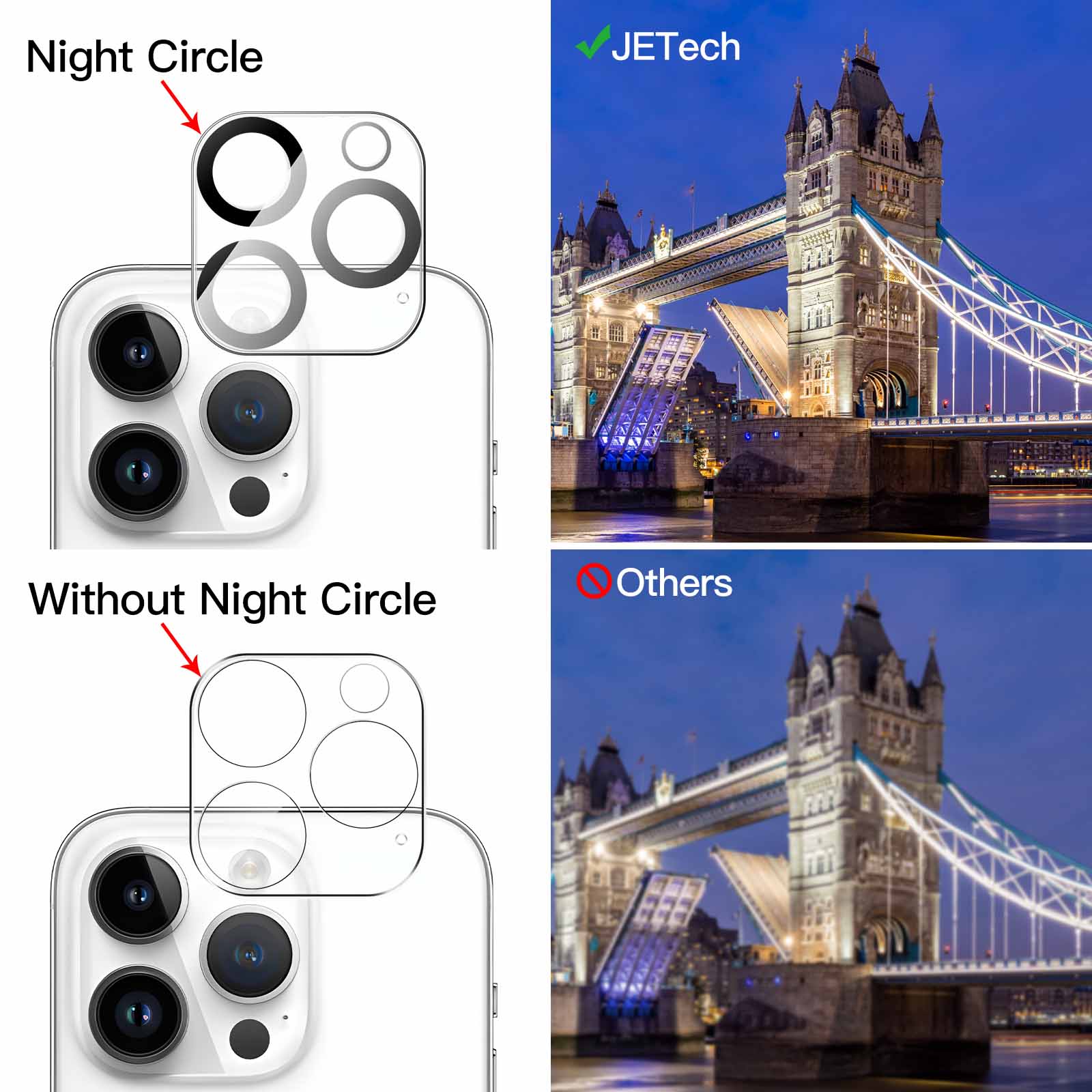 [Night-Shooting Mode] The camera lens protectors with built-in night circle ensure high transmittance, enable you to use the flash function in low light conditions, and will NOT affect the quality of pictures and videos
