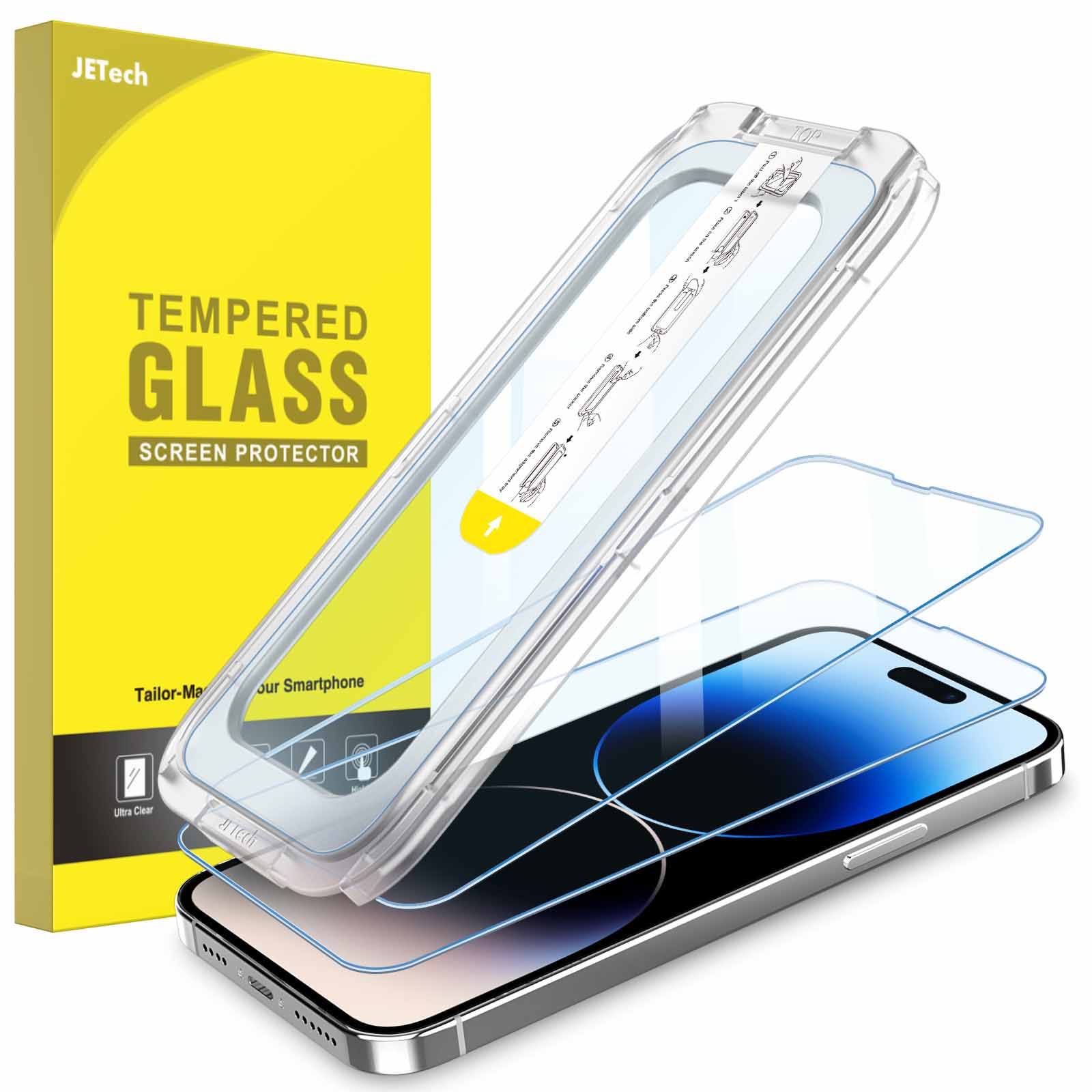 JETech One Touch Install Screen Protector for iPhone 14 Pro Max 6.7-Inch, Full Coverage Tempered Glass Film, Auto Alignment Tool Kit, HD Clear, 2-Pack