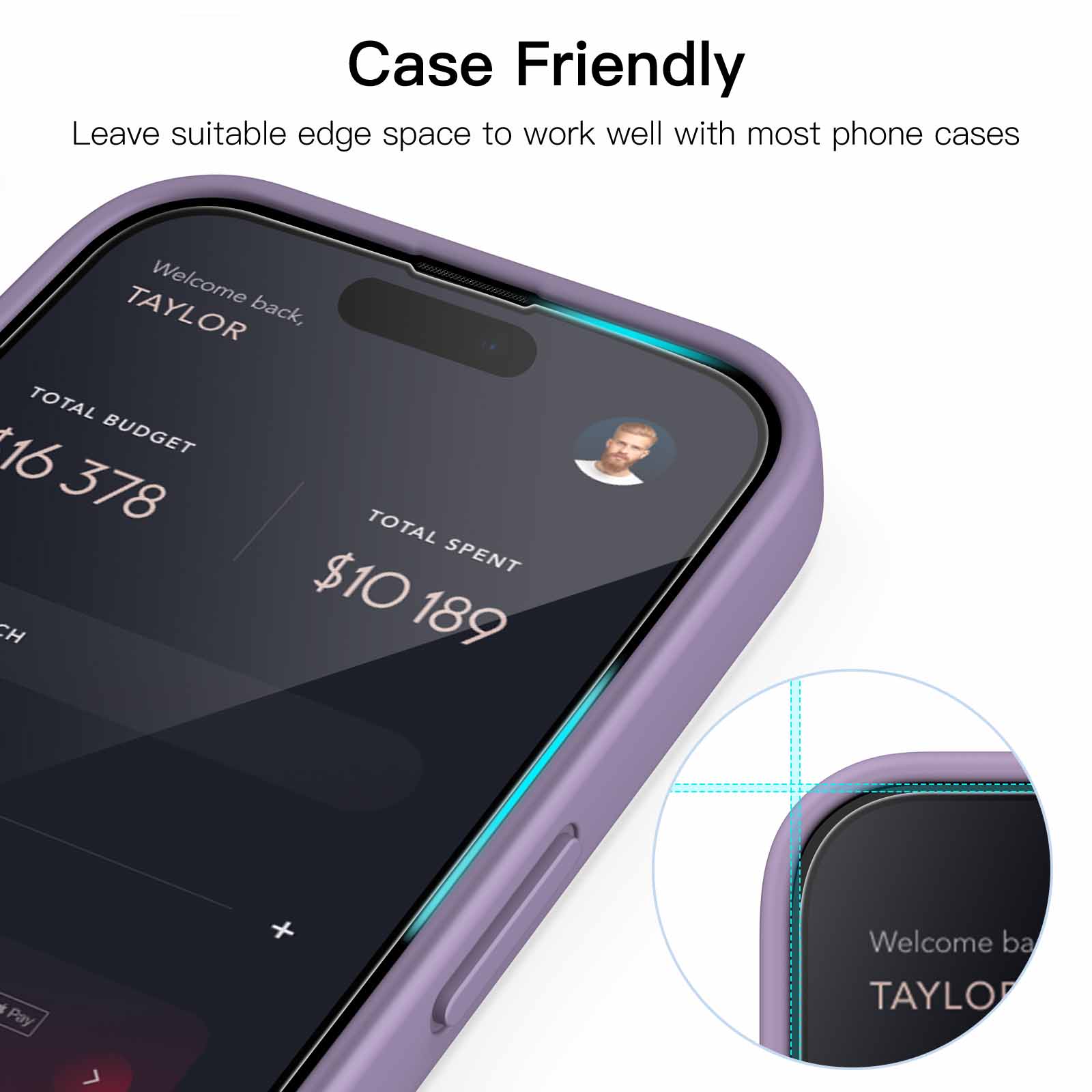 [Case-Friendly] There is enough edge space around the borders for your case to wrap around the edges of your mobile. Compatible with most phone cases