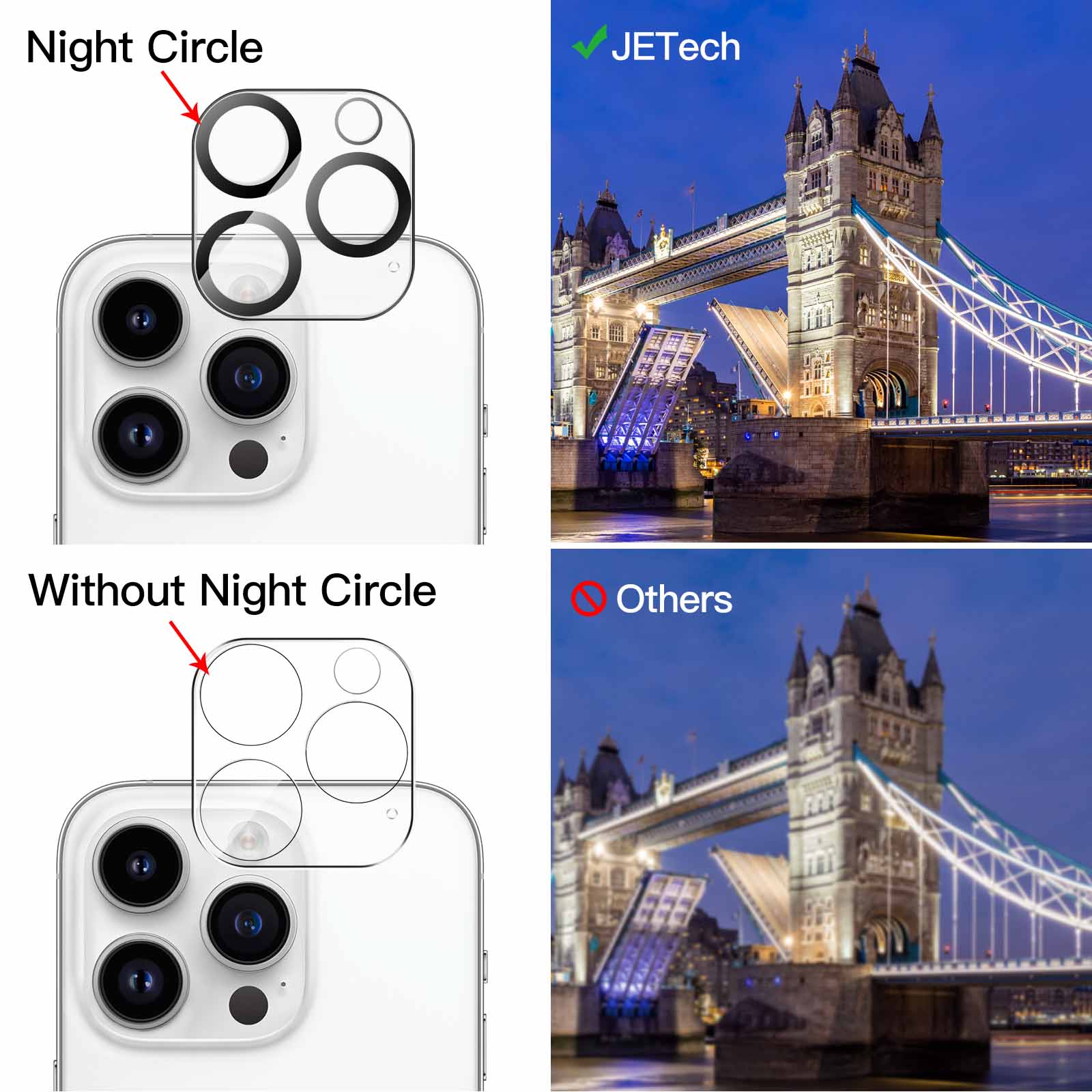 [Night Shooting Function] Built-in black circles of the camera lens protector do not affect the normal use of flash function. Enjoy your photography time at night or in the low light condition