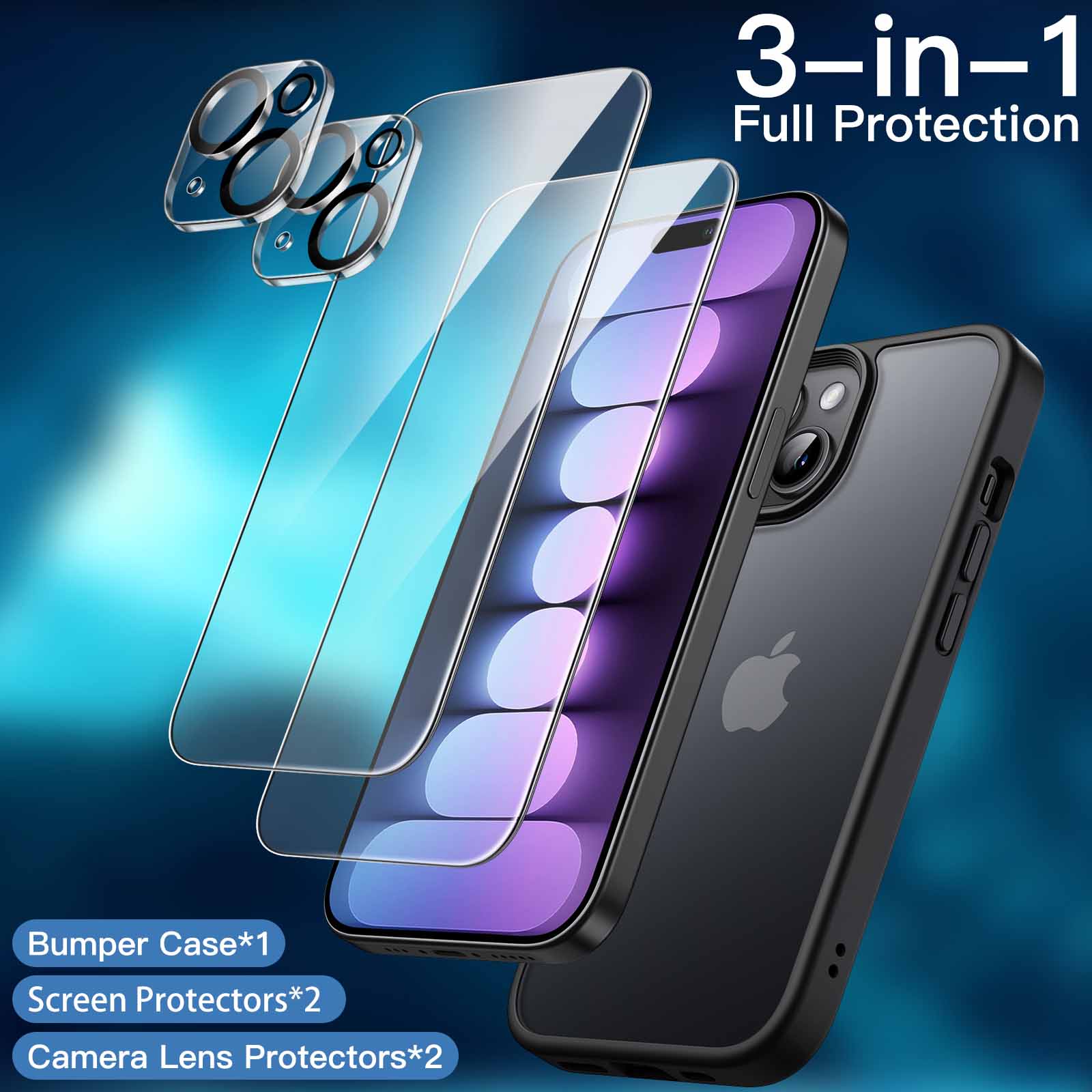 [5-in-1 Full Protection] There are 2-pack screen protectors with an alignment tool, 2-pack camera lens protectors and a matte case, providing all-around protection for your phone. Easy installation with included accessory kits