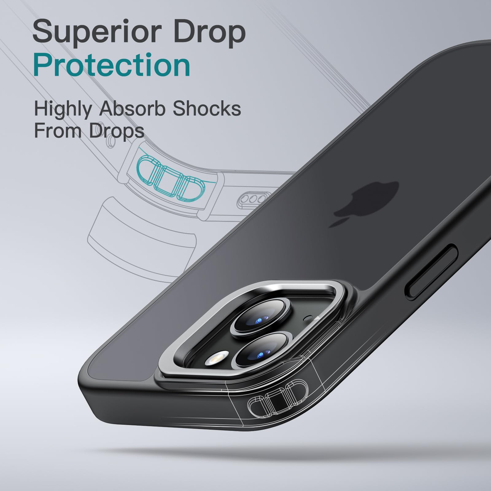 JETech Kickstand Case for iPhone 15 6.1-Inch, Built-in Adjustable Camera Stand, Military Grade Drop Protection, Frosted Translucent Matte Back Shockproof Phone Cover