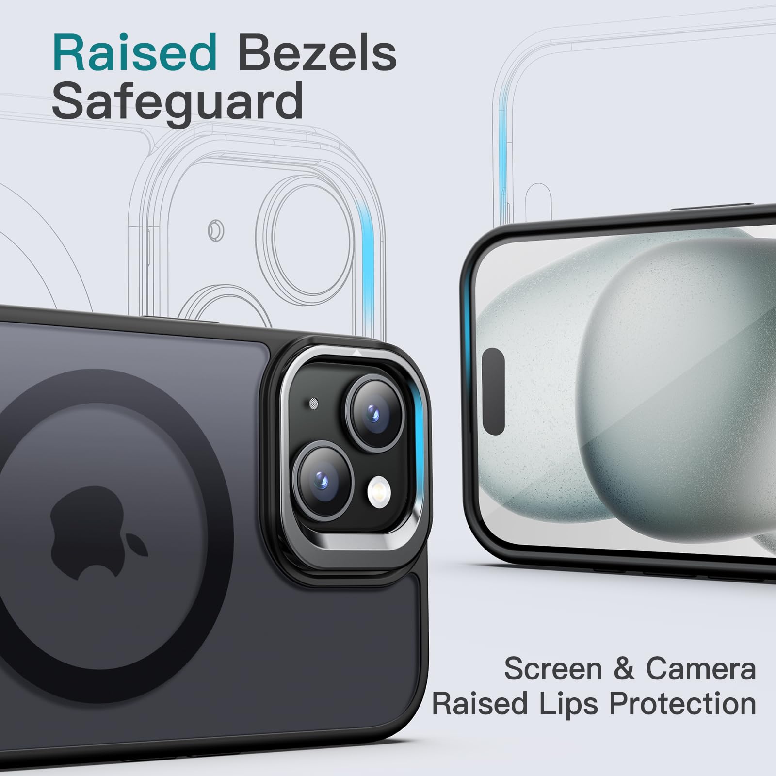 I saw this brand (JeTech) on Emily in Paris and was curious to see whether it was as good as everyone said. and I was pleasantly surprised. It is a lovely case which enhances the look of my phone while protecting it..This is a stunning black JETech Kickstand Case for iPhone 15 Plus. with a translucent back with black magsafe magnetic ring which allows this case to support wireless magnetic charging. This means your phone can be held in place securely on magnetic magsafe chargers..There are raised bezels around the case to protect the camera and screen from scratches when placed on a hard surface..The case is slimline and lightweight. yet protective and durable while looking sleek..There is a unique fold-out metallic silver kickstand around the camera lens area. which provides protection when folded away and a convenient way to watch movies or make video calls when folder outwards. It is fully adjustable to any angle..The case features perfectly aligned buttons and cutouts which provide a convenient way to operate your iphone.