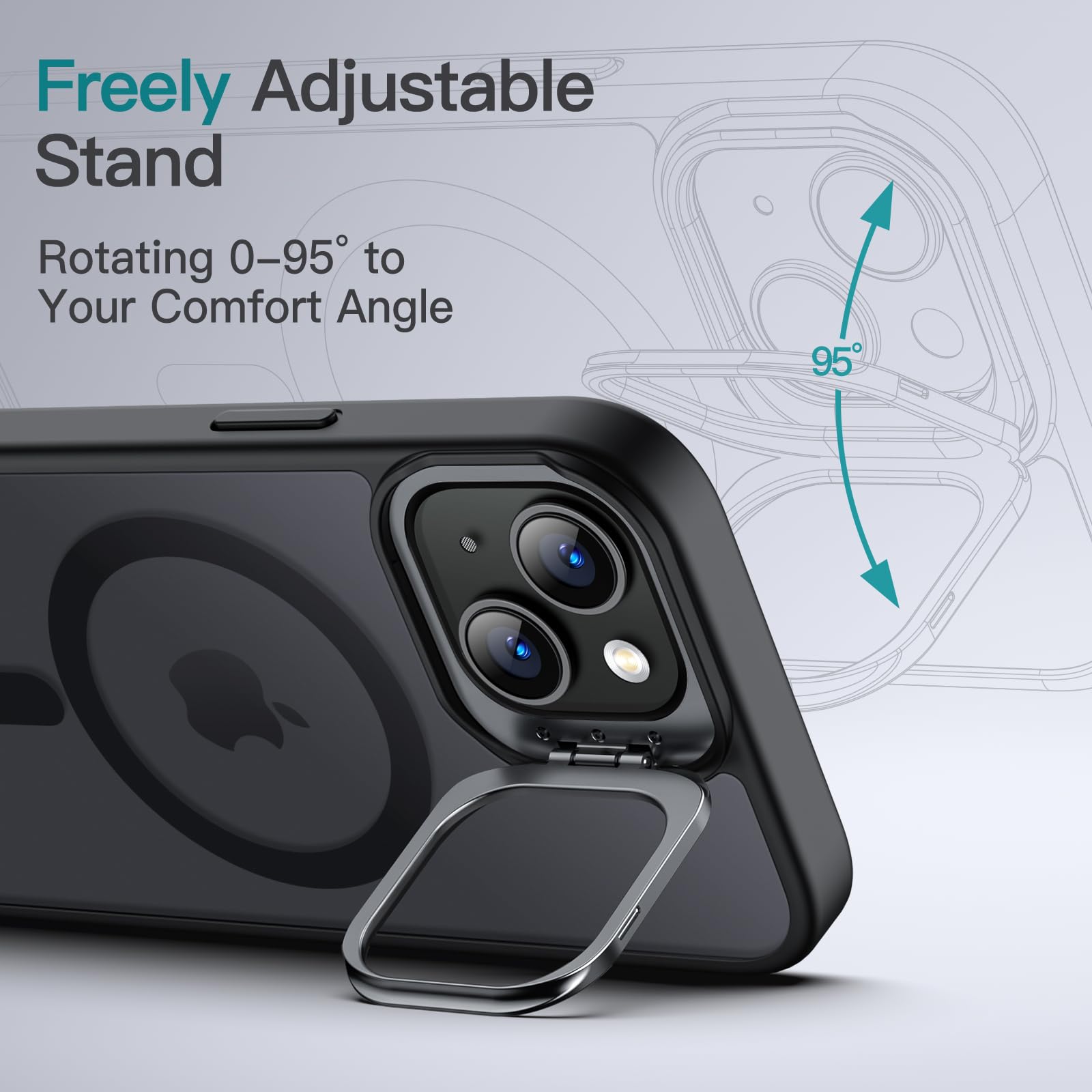 [Adjustable Hidden Stand] Introducing a sleek and concealed stand design around the camera, offering foldability and multiple adjustable angles for effortless viewing pleasure anytime, anywhere while allowing you to charge your phone wirelessly uninterrupted. The stand is crafted from high-quality zinc alloy material, and its hinge has been tested more than 3000 times to ensure durability and reliability