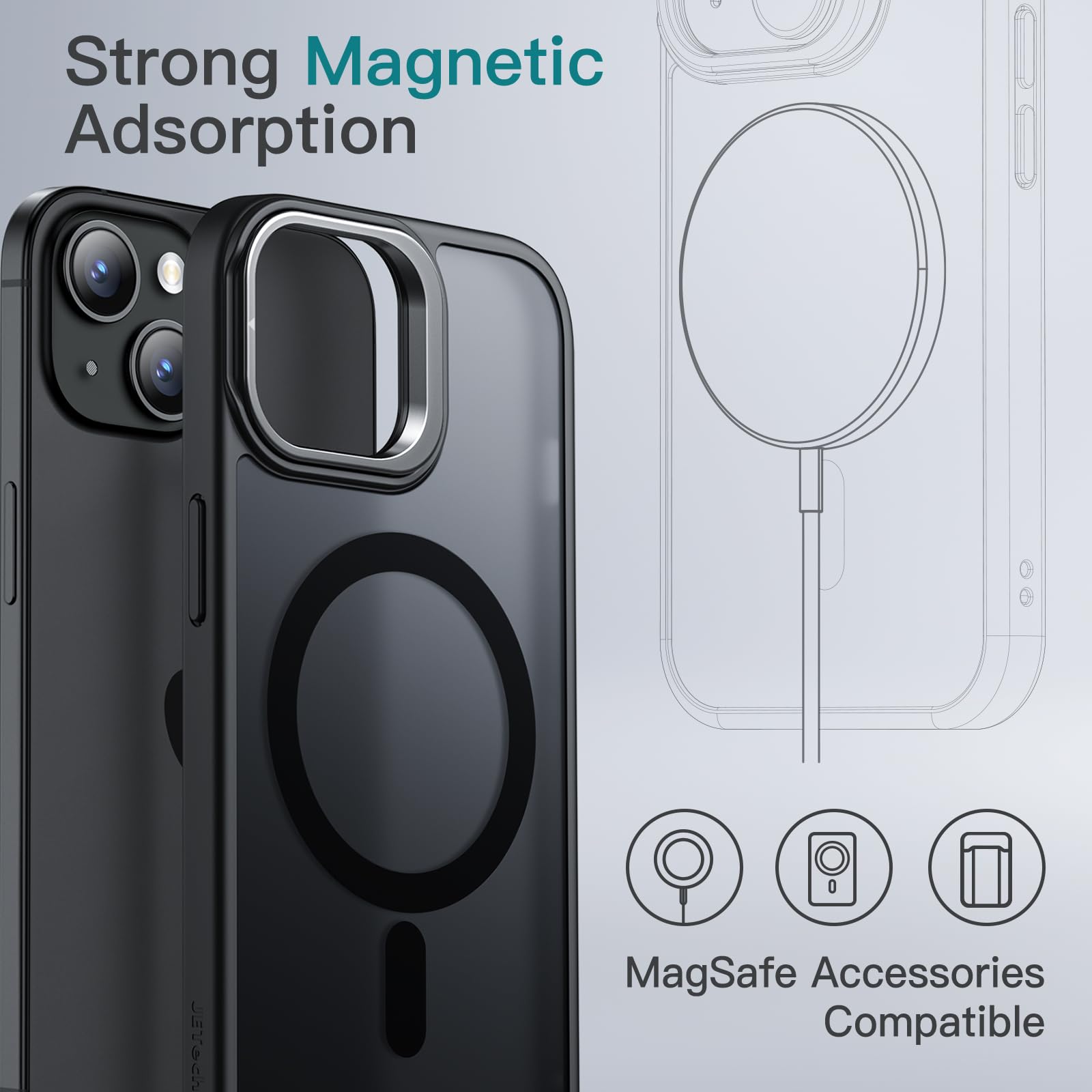 [Super Magnetic Adsorption] Strongly attach to the charger magnetically. Once snap on, never sliding. Compatible with MagSafe accessories, such as wallet, ring holder and power bank