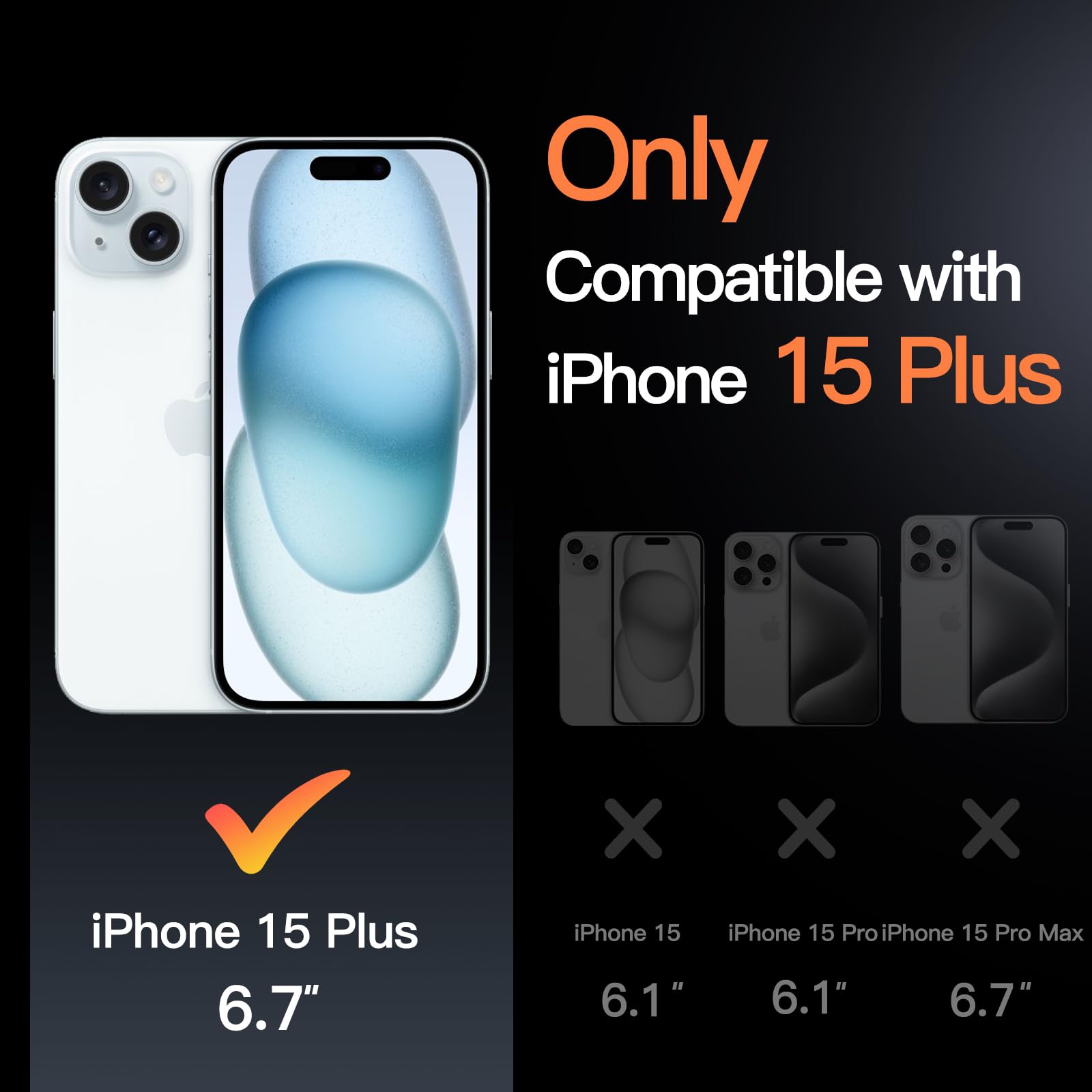 This phone case for the iPhone 15 Plus 6.7 inch and comes in a box with no screen cover..The case is made of clear TPU plastic and feels solid and protective..All the notches appear to have been cut out in the correct location for your iPhone and additionally on the back of the phone camera surround is a metal kick stand that levers out and provides a brilliant stand to rest your phone against. When you have finished with the stand it folds back into the recess of the camera surround..Additionally on the back of the phone cover is a magnetic absorption ring so that you can use your car or home charger that magnetically attaches to the back of it to hold it in place. I am guessing even though the back of the iPhone is magnetic when it has a cover this becomes a problem for it to attach to. But now with the additional magnet ring which holds it in place for added attraction..Unfortunately there was no screen cover with the cover so you will have to purchase this separately..Overall this phone cover is an effective solution if you are after a clear case for your iPhone plus 6.1 and is reasonably priced.
