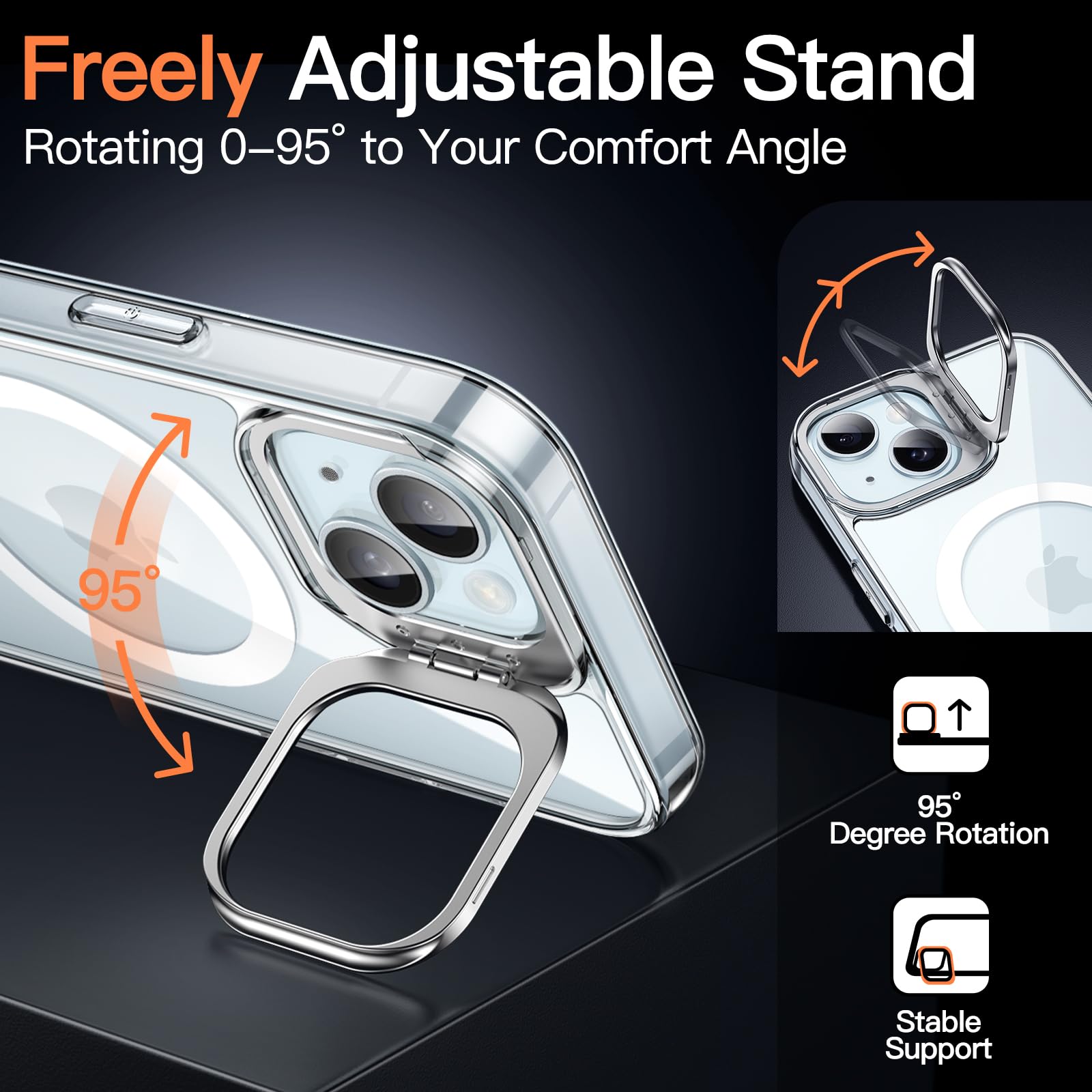 [Compatibility] Exclusively designed for iPhone 15 Plus 6.7-inch. The clear kickstand case is compatible with MagSafe accessories