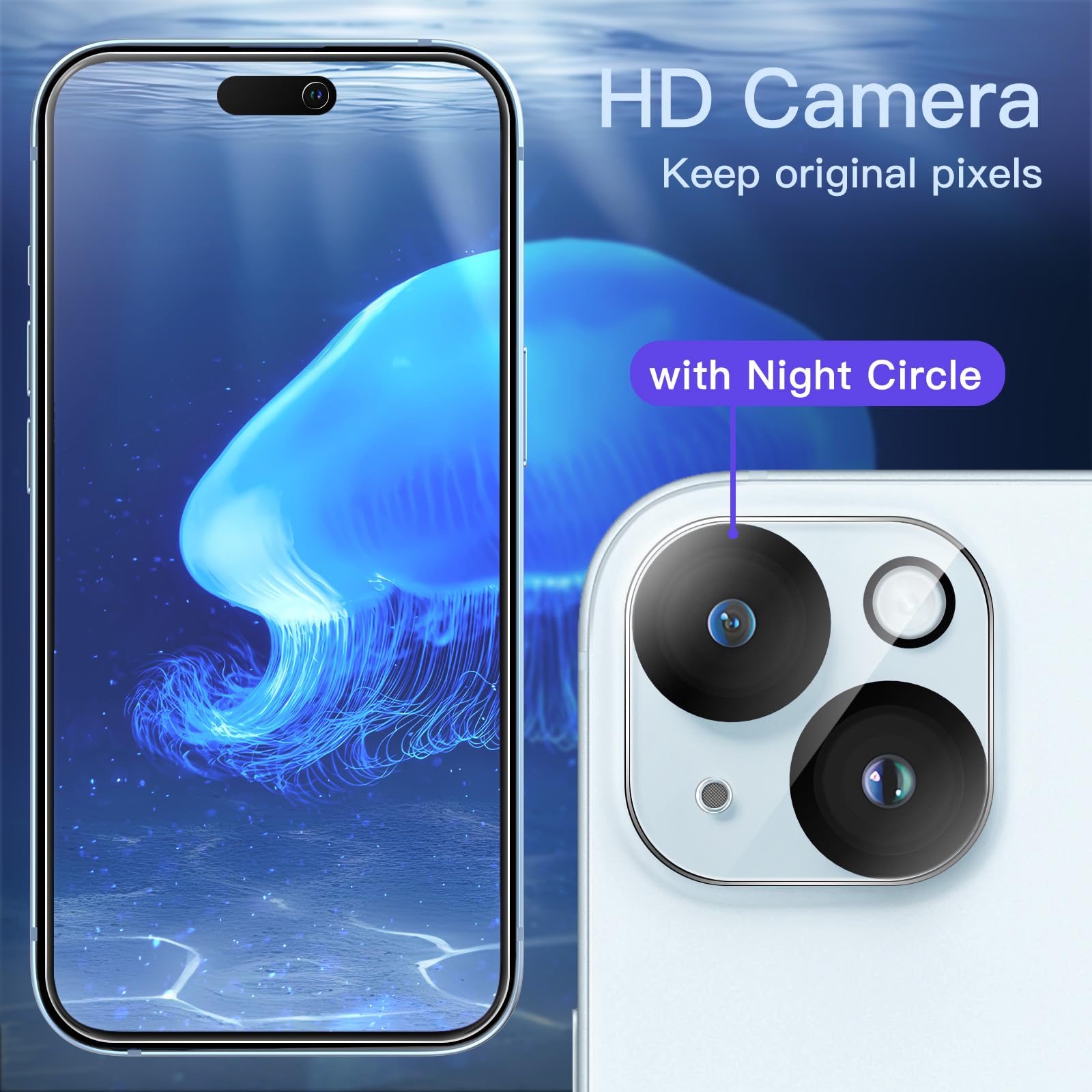 [Night Shooting Mode] The camera lens protector with upgraded built-in night circle allows you to use the flash function normally at night. High light transmittance ensures the original quality of pictures and videos