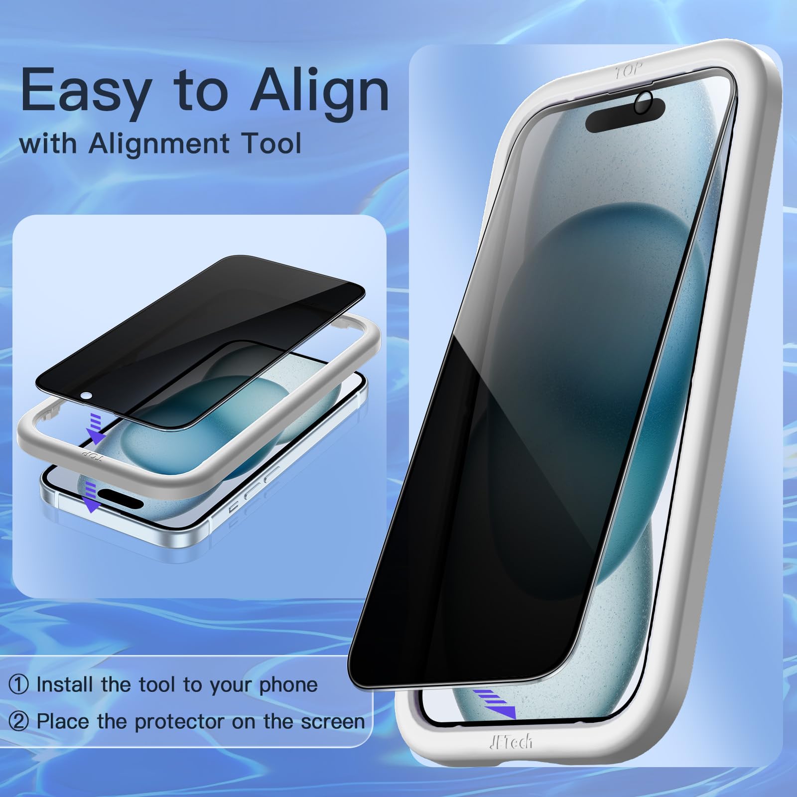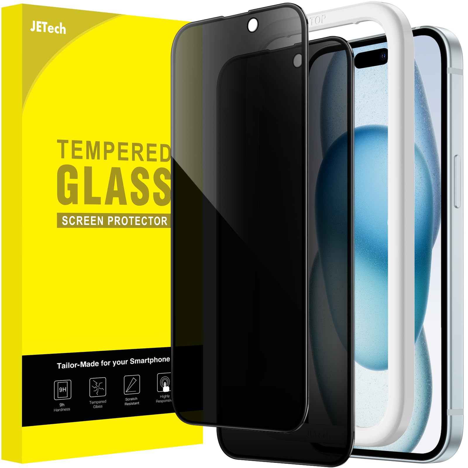 JETech Privacy Full Coverage Screen Protector for iPhone 15 Plus 6.7-Inch, Black Edge Anti-Spy Tempered Glass Film with Easy Installation Tool, Case-Friendly, 2-Pack