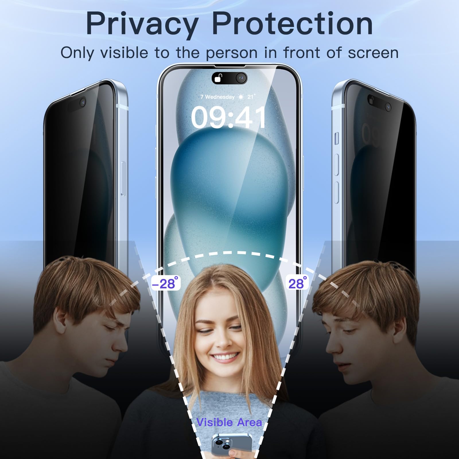 [Privacy Protection] Exclusively for iPhone 15 Plus 6.7-inch. Screen is only visible to the person directly in front of screen. Effectively protect your privacy from peeping