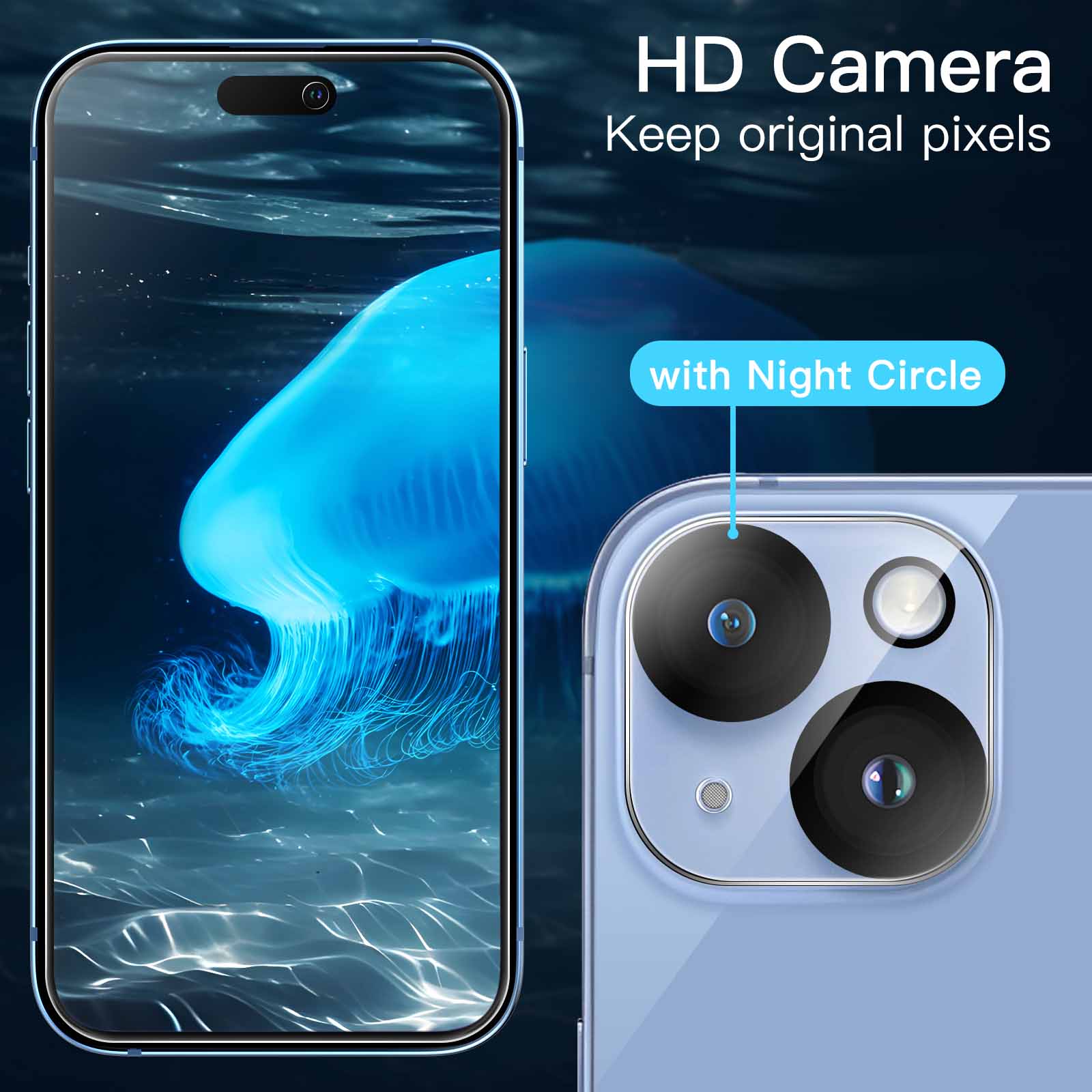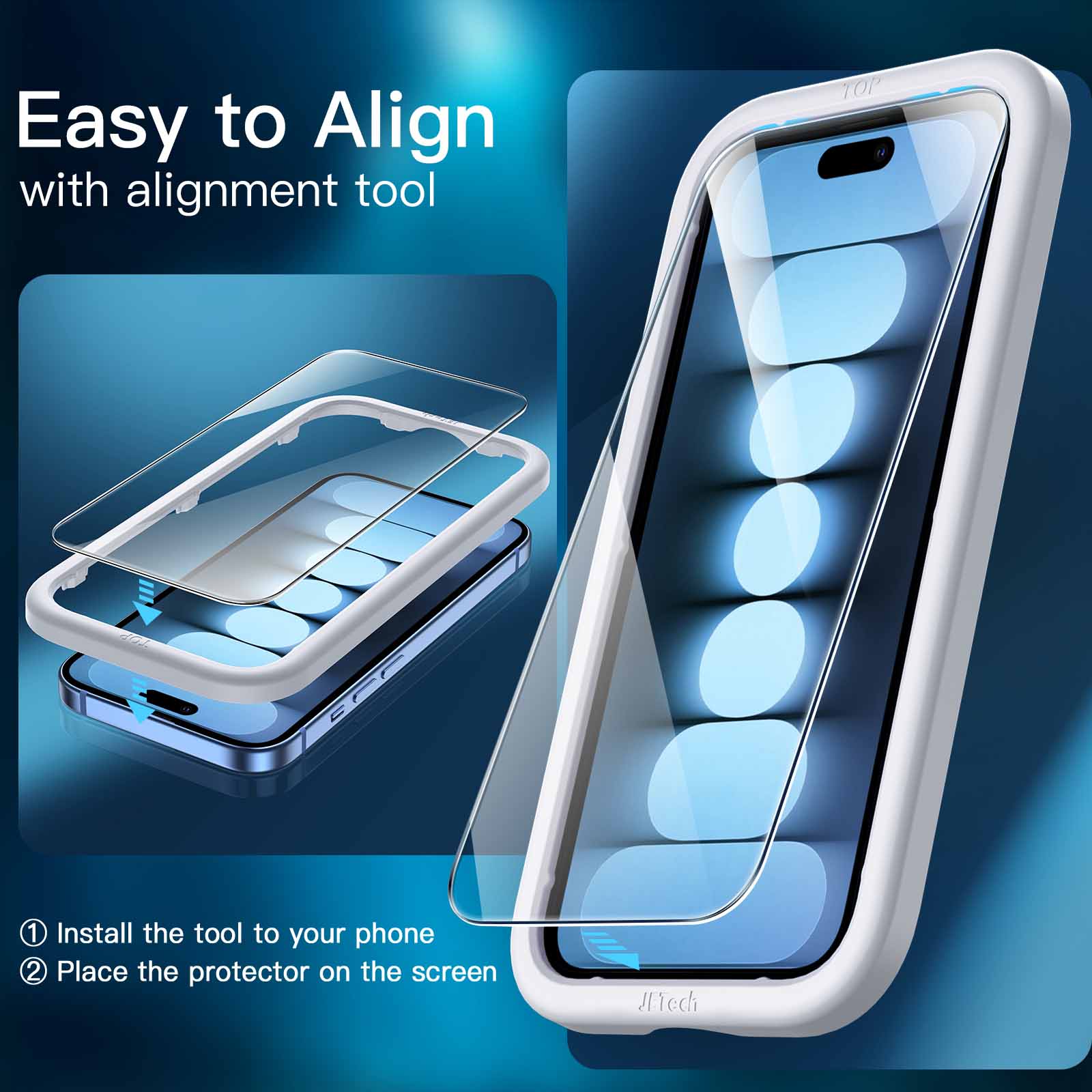 JETech Screen Protector for iPhone 15 Plus 6.7-Inch with Camera Lens Protector, Easy Installation Tool, Tempered Glass Film, HD Clear, 2-Pack Each