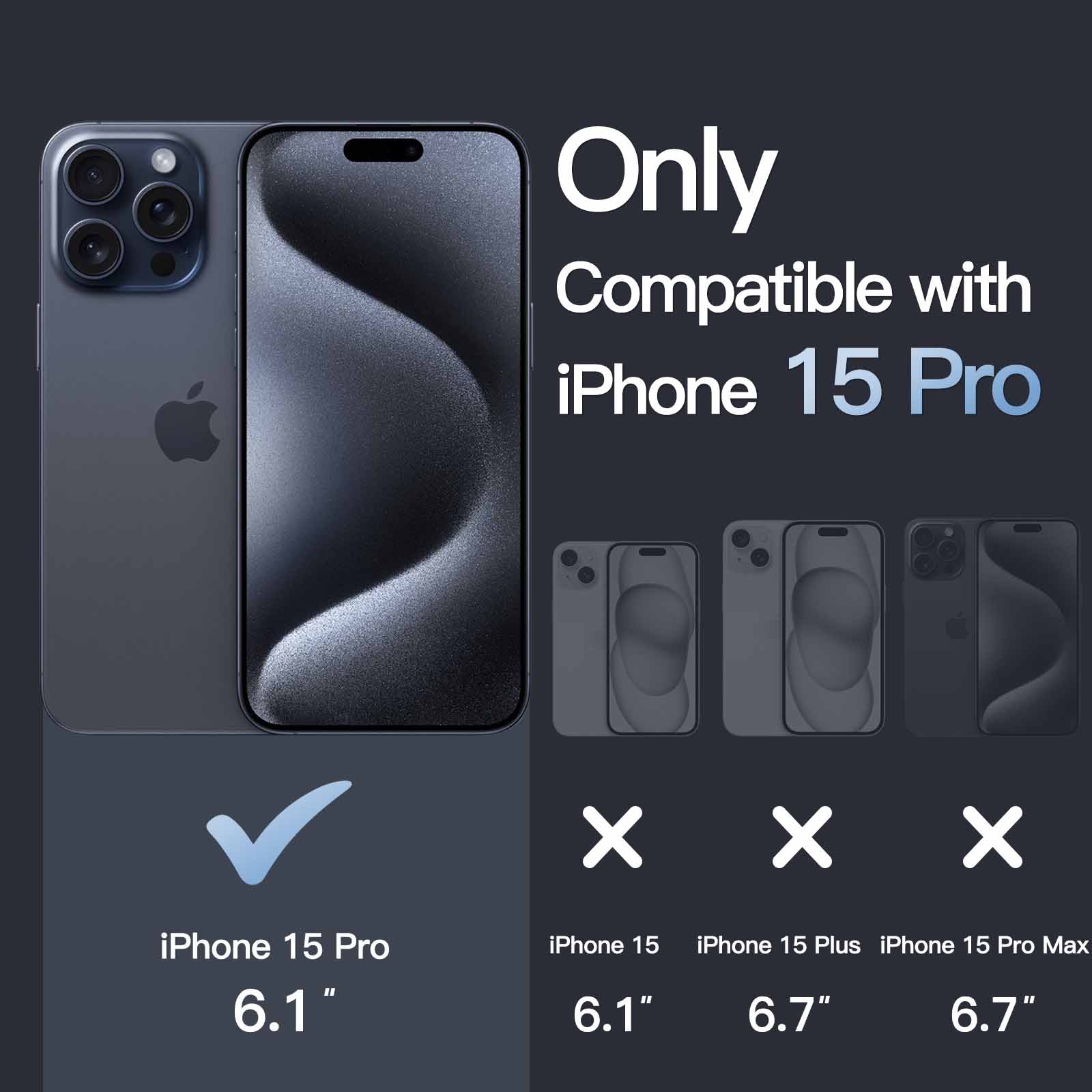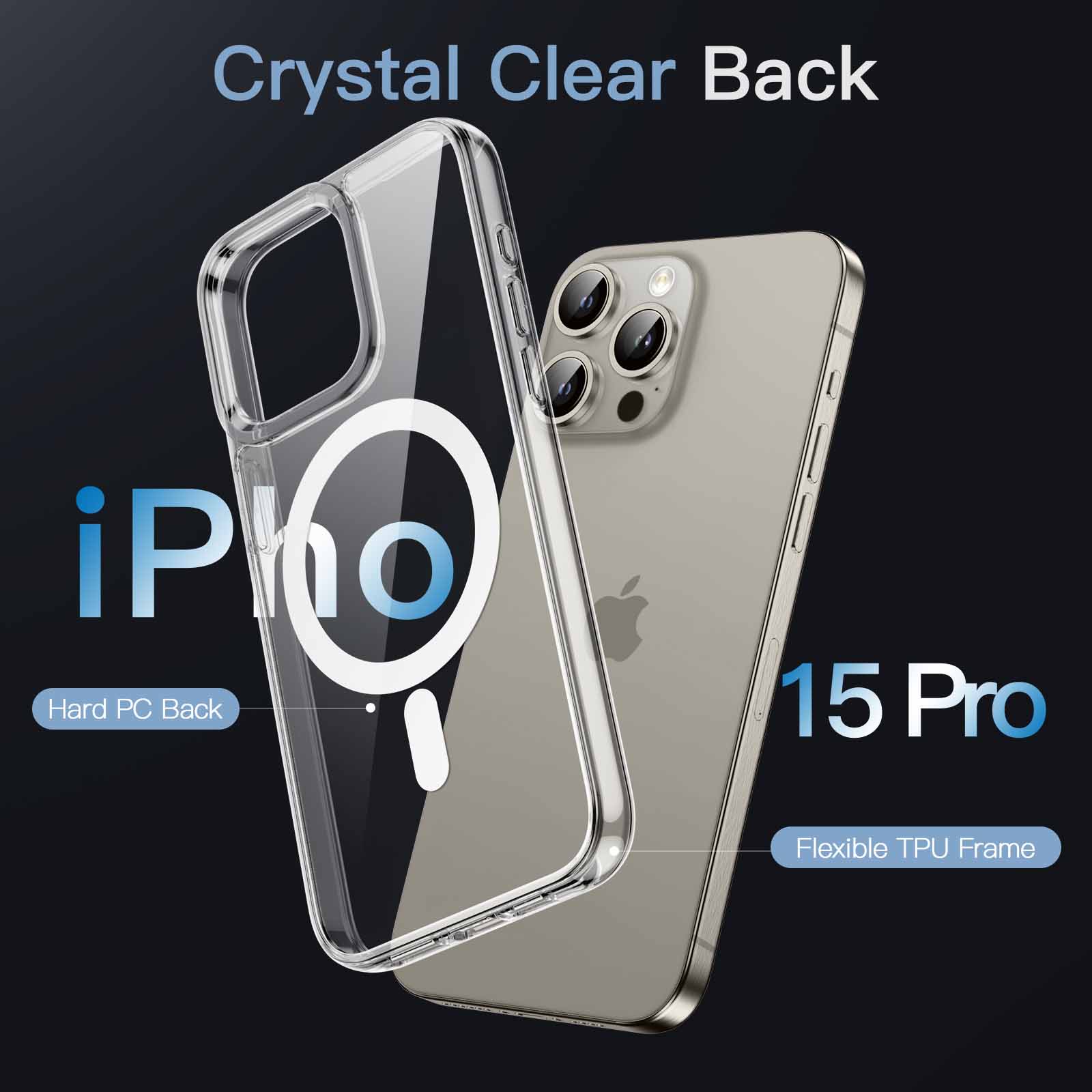 [Compatibility] Exclusively designed for iPhone 15 Pro 6.1-inch. NOTE: Not for iPhone 15 Pro Max 6.7-inch. With built-in 38 pieces of magnets, the clear case is compatible with all MagSafe accessories