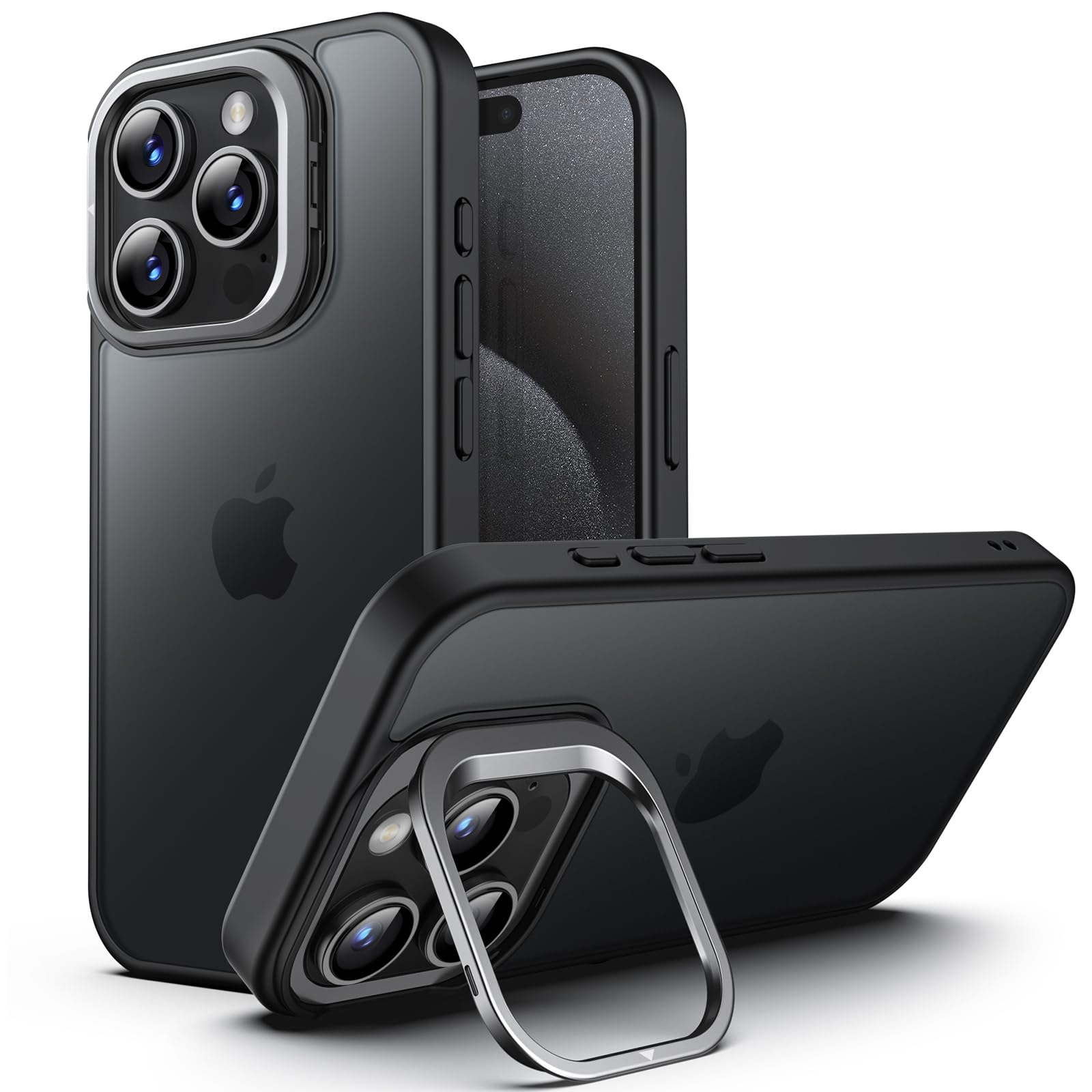JETech Kickstand Case for iPhone 15 Pro 6.1-Inch, Built-in Adjustable Camera Stand, Military Grade Drop Protection, Frosted Translucent Matte Back Shockproof Phone Cover