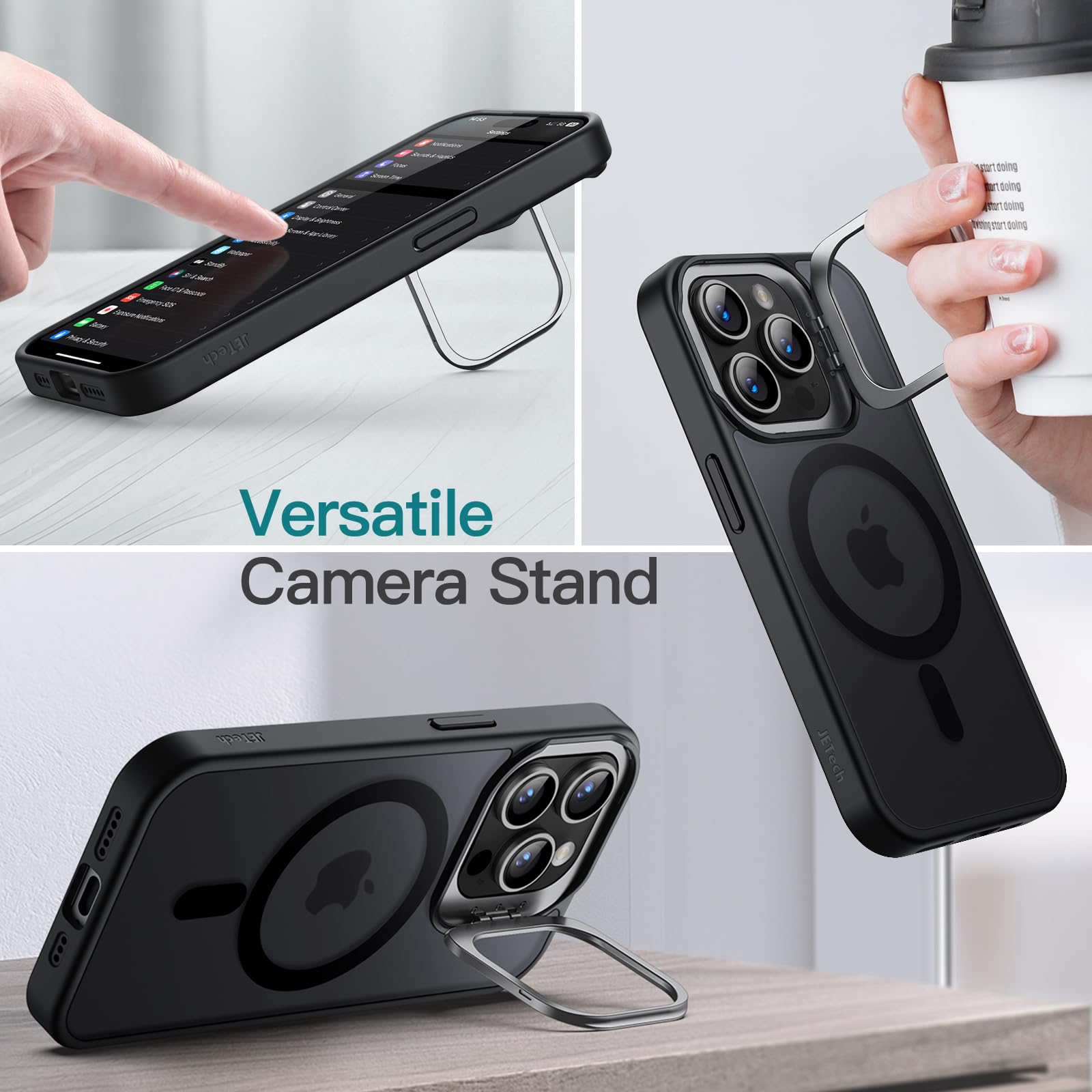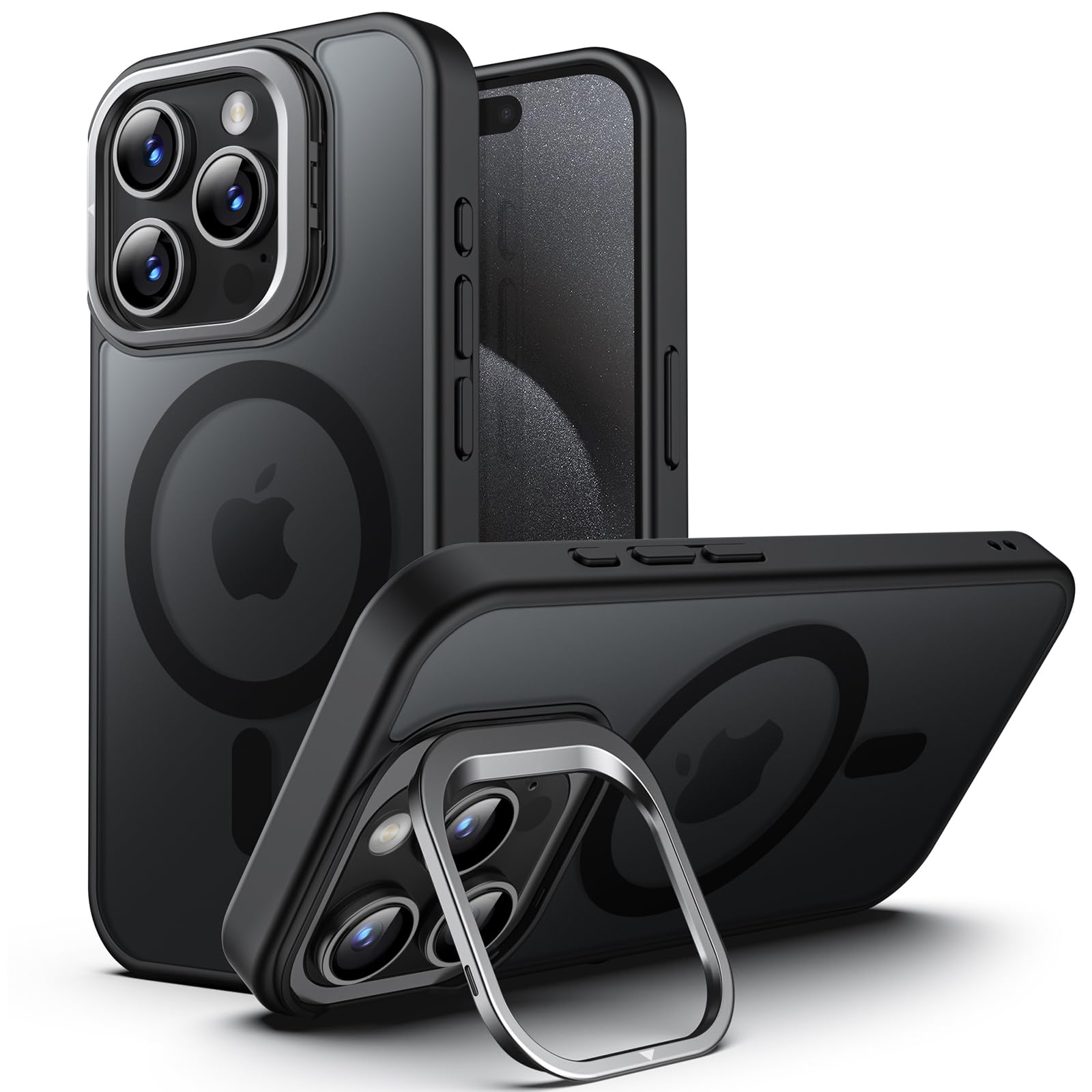 JETech Kickstand Case for iPhone 15 Pro 6.1-Inch Compatible with MagSafe, Built-in Adjustable Camera Stand, Translucent Matte Magnetic Back Slim Shockproof Phone Cover