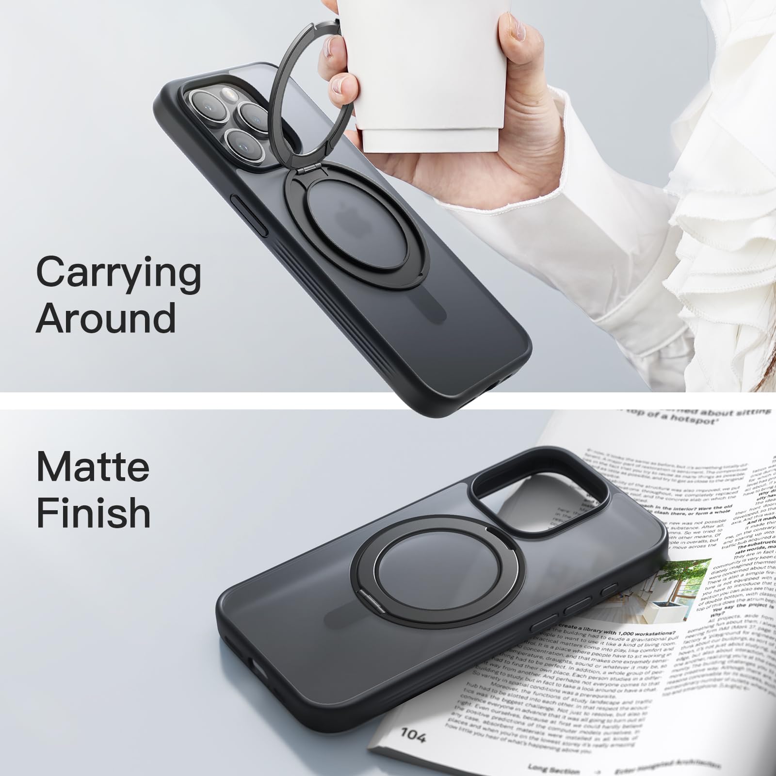 • [Lasting Durability] The rotatable ring stand undergoes over 3000 open/close tests throughout the manufacturing process to provide you with quality assurance. Meanwhile, the raised edges effectively protect the screen and camera, perfectly protect your phone from daily drops and bumps