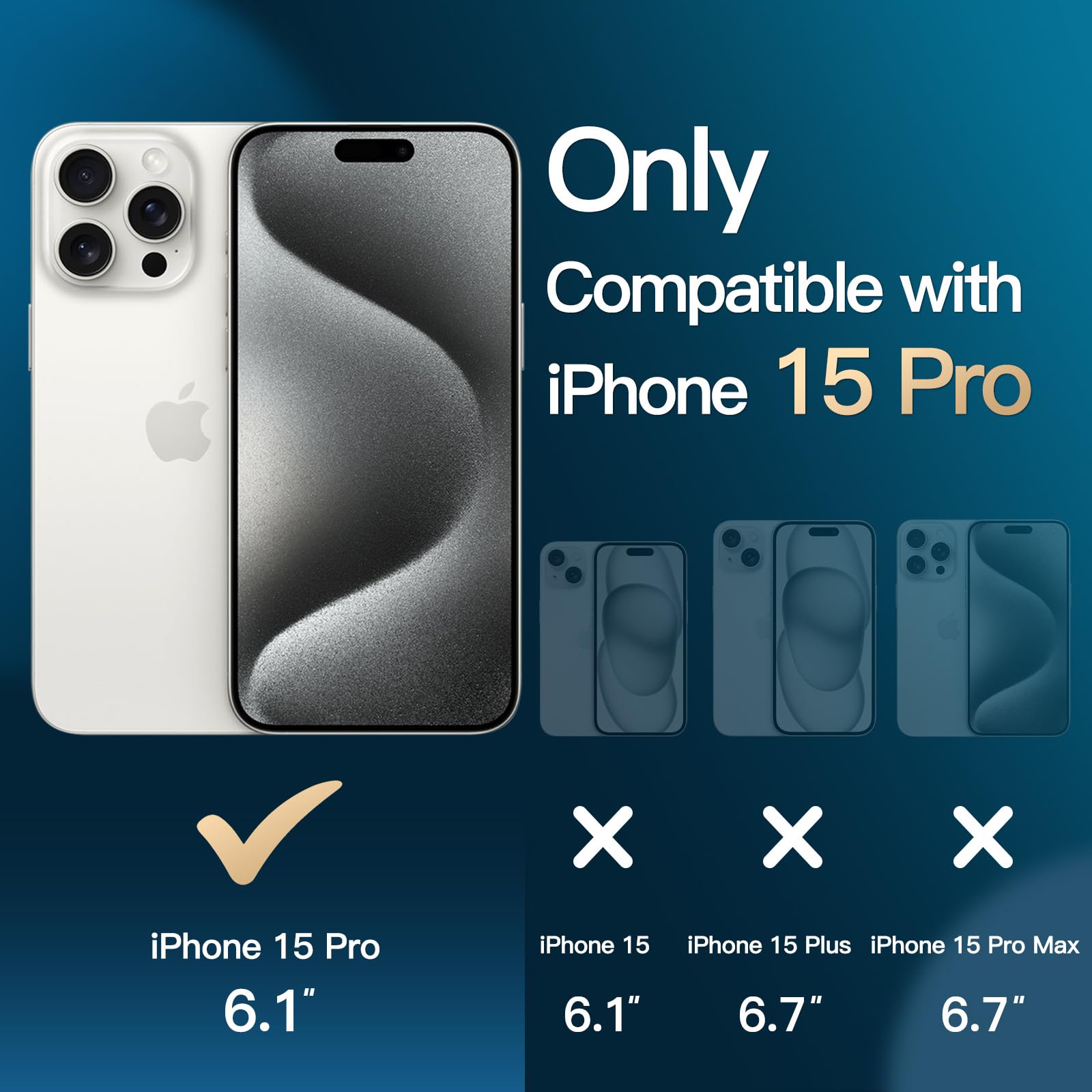 [3-in-1 High Protection] Exclusively fit iPhone 15 Pro 6.1-inch. You will receive a protective clear case and 2 pack screen protectors with an alignment tool, bringing comprehensive protection to your device