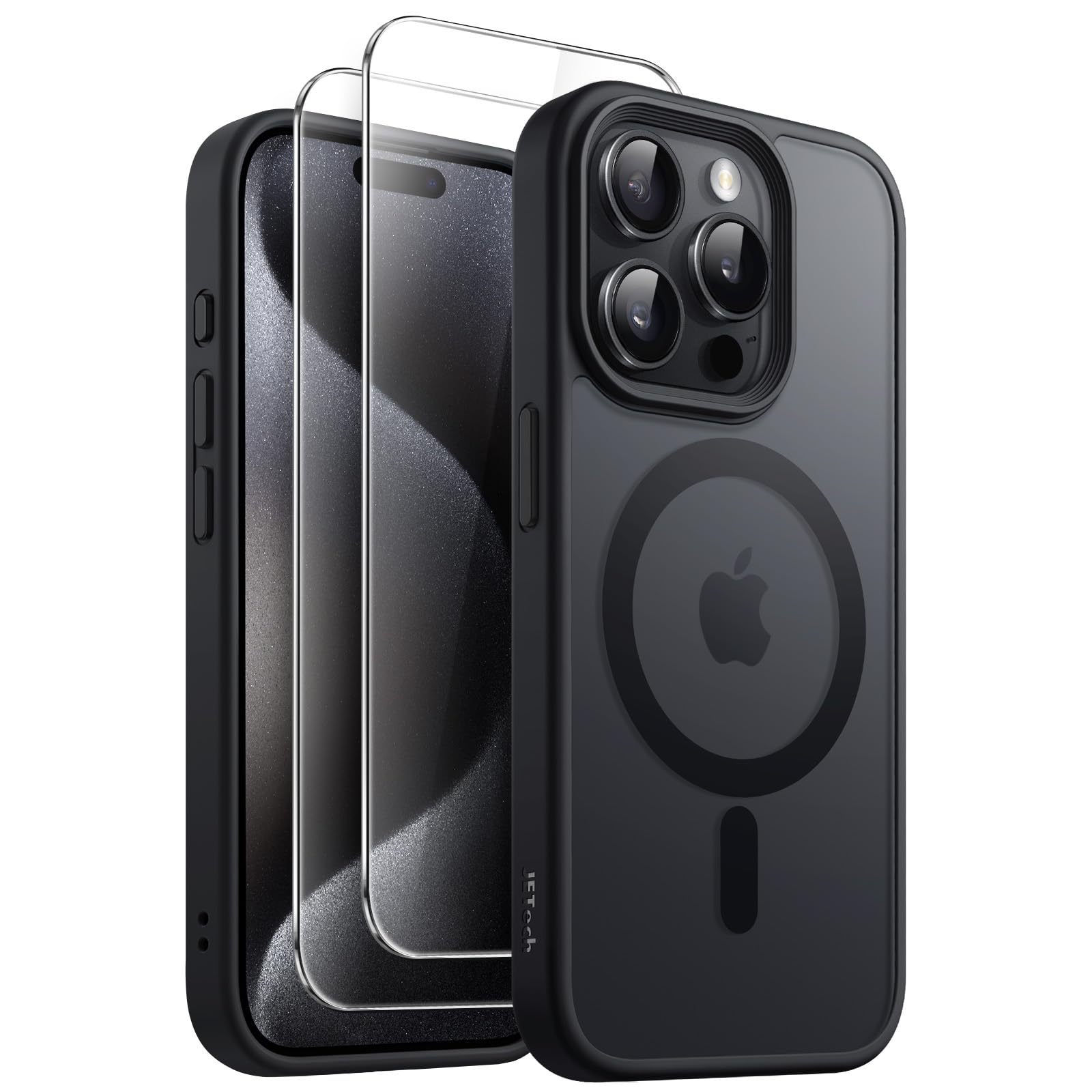 JETech 3 in 1 Magnetic Case for iPhone 15 Pro 6.1-Inch with 2 Pack Tempered Glass Screen Protectors, Compatible with MagSafe, Translucent Matte Back Shockproof Phone Cover