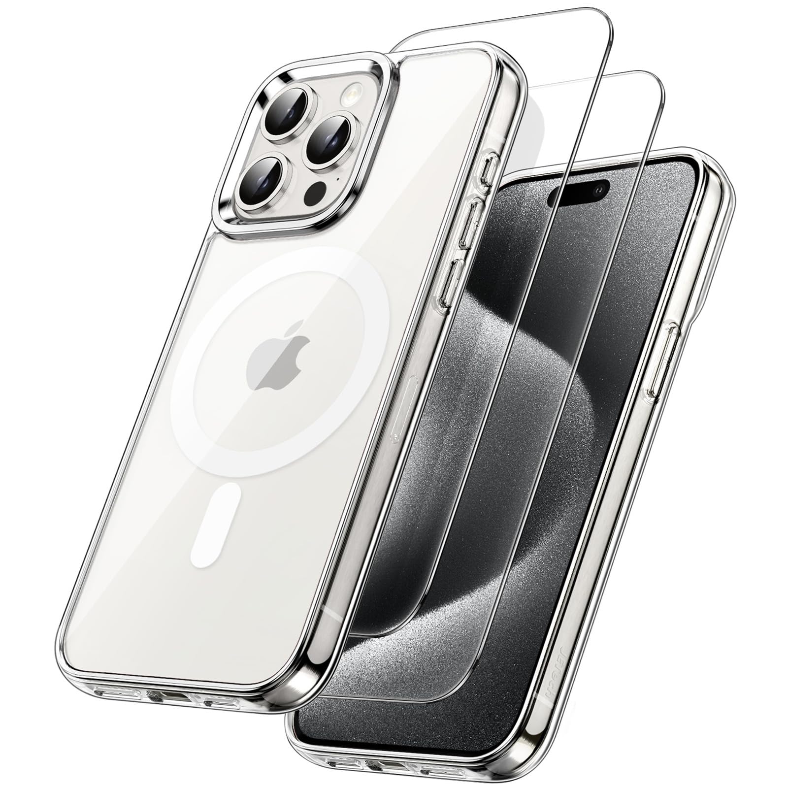 JETech 3 in 1 Magnetic Case for iPhone 15 Pro 6.1-Inch with 2 Pack Tempered Glass Screen Protectors, Compatible with MagSafe, Shockproof Bumper Phone Cover