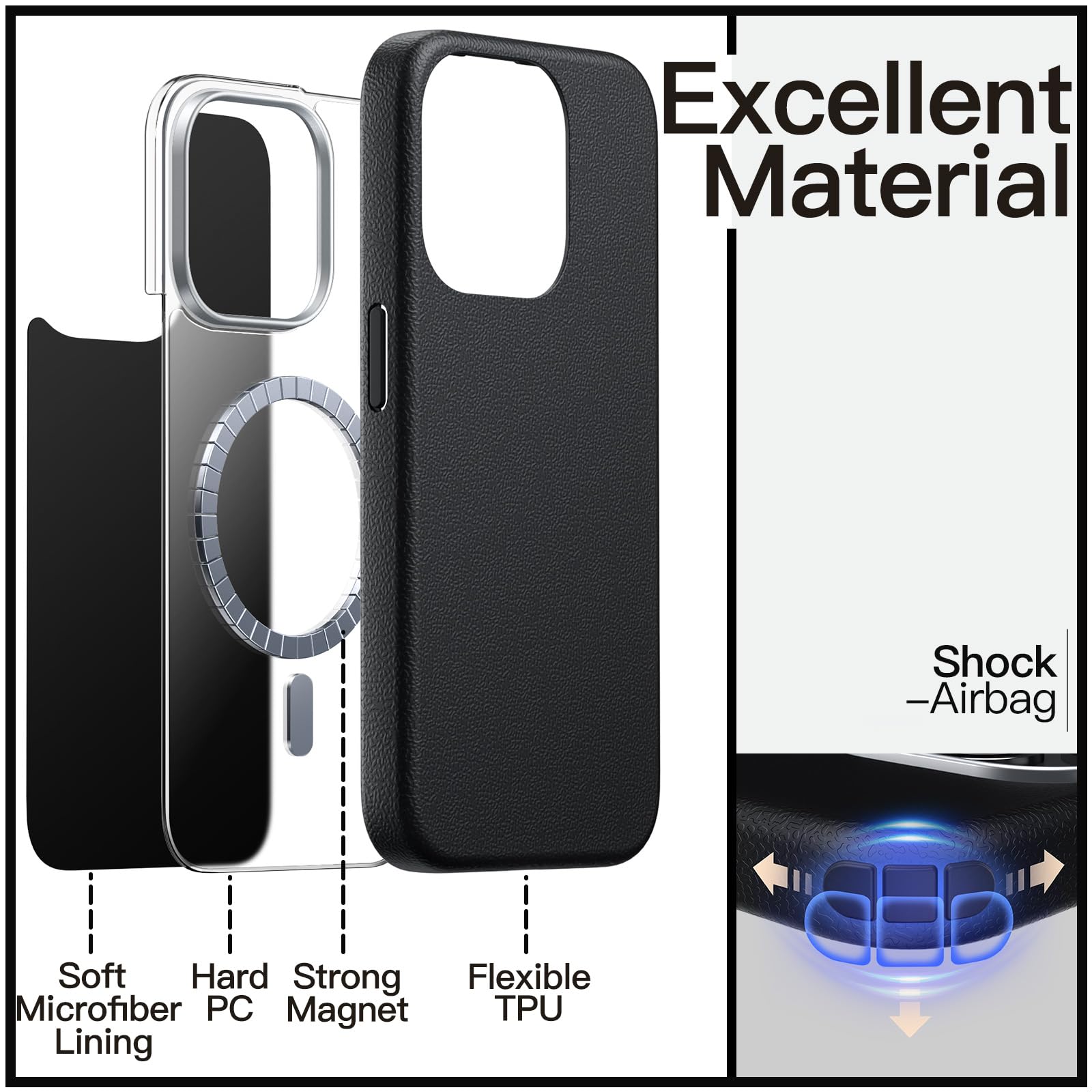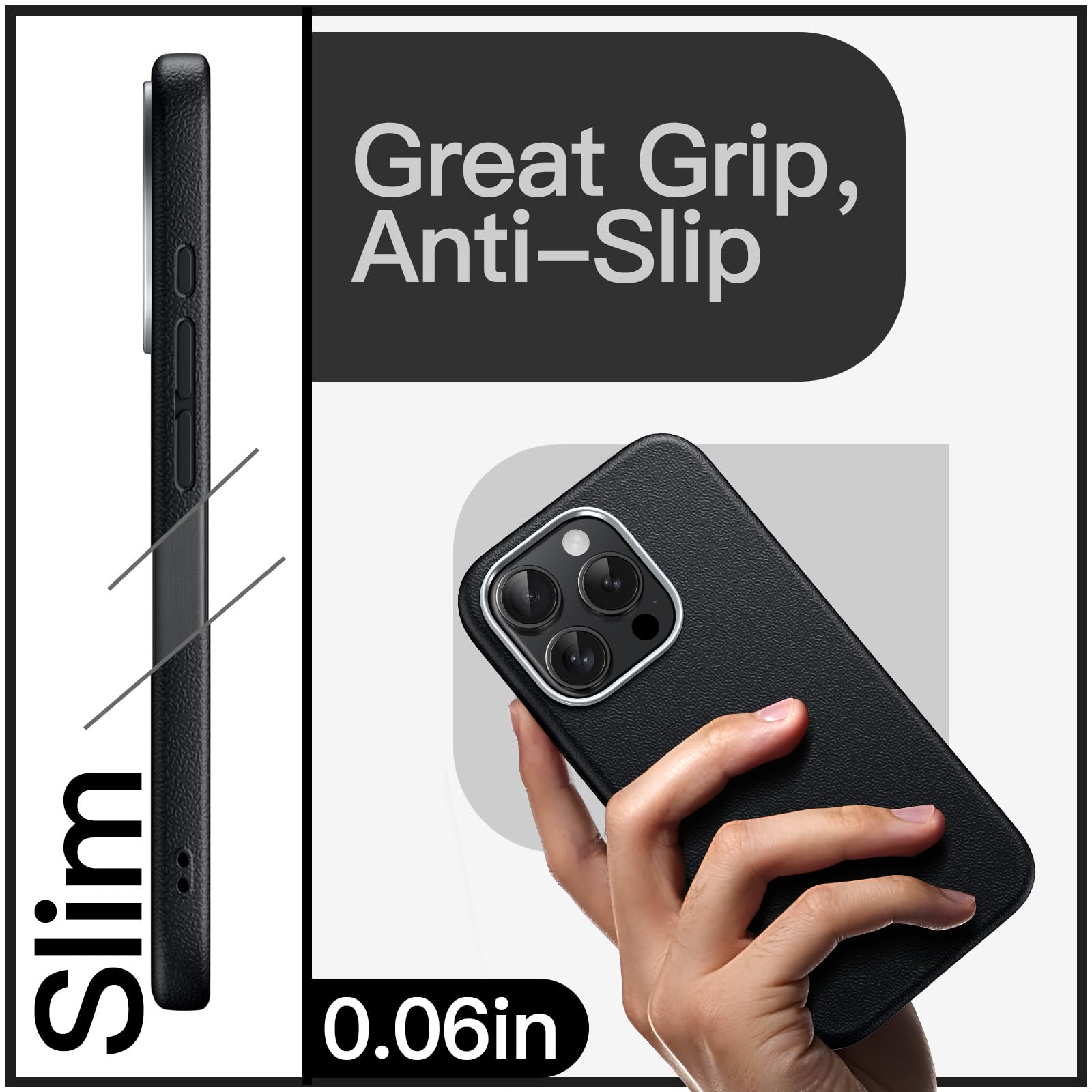 The JETech Slim Case for iPhone 15 Pro combines a slim design with reliable protection and a solid MagSafe connection. It’s the perfect balance of style and functionality..? Pros:.- MagSafe compatibility with a strong magnetic hold for charging and accessories.- Lightweight and elegant with a sleek. leather-looking texture.- Anti-slip back enhances grip. but not as grippy as I’d like.- Precise cutouts for buttons. ports and speakers.- Great price for the quality offered.? Cons:.- Feels somewhat plastic-like rather than leather-like.- Slightly loose around the edges. not quite perfectly snug.- Prefer an open cut-out at the bottom to better accommodate charging cables