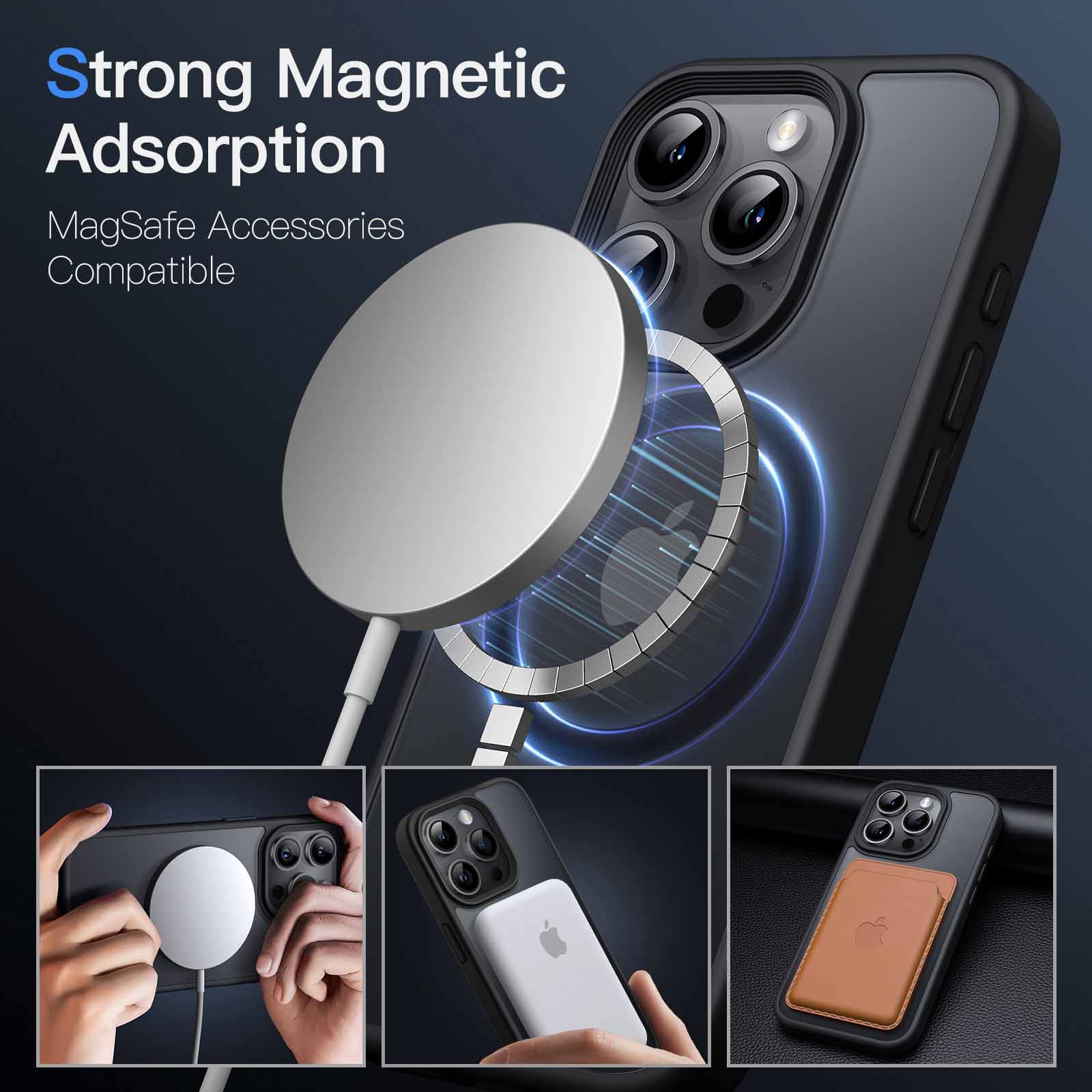 JETech Magnetic Case for iPhone 15 Pro Max 6.7-Inch Compatible with MagSafe, Translucent Matte Back Slim Shockproof Phone Cover