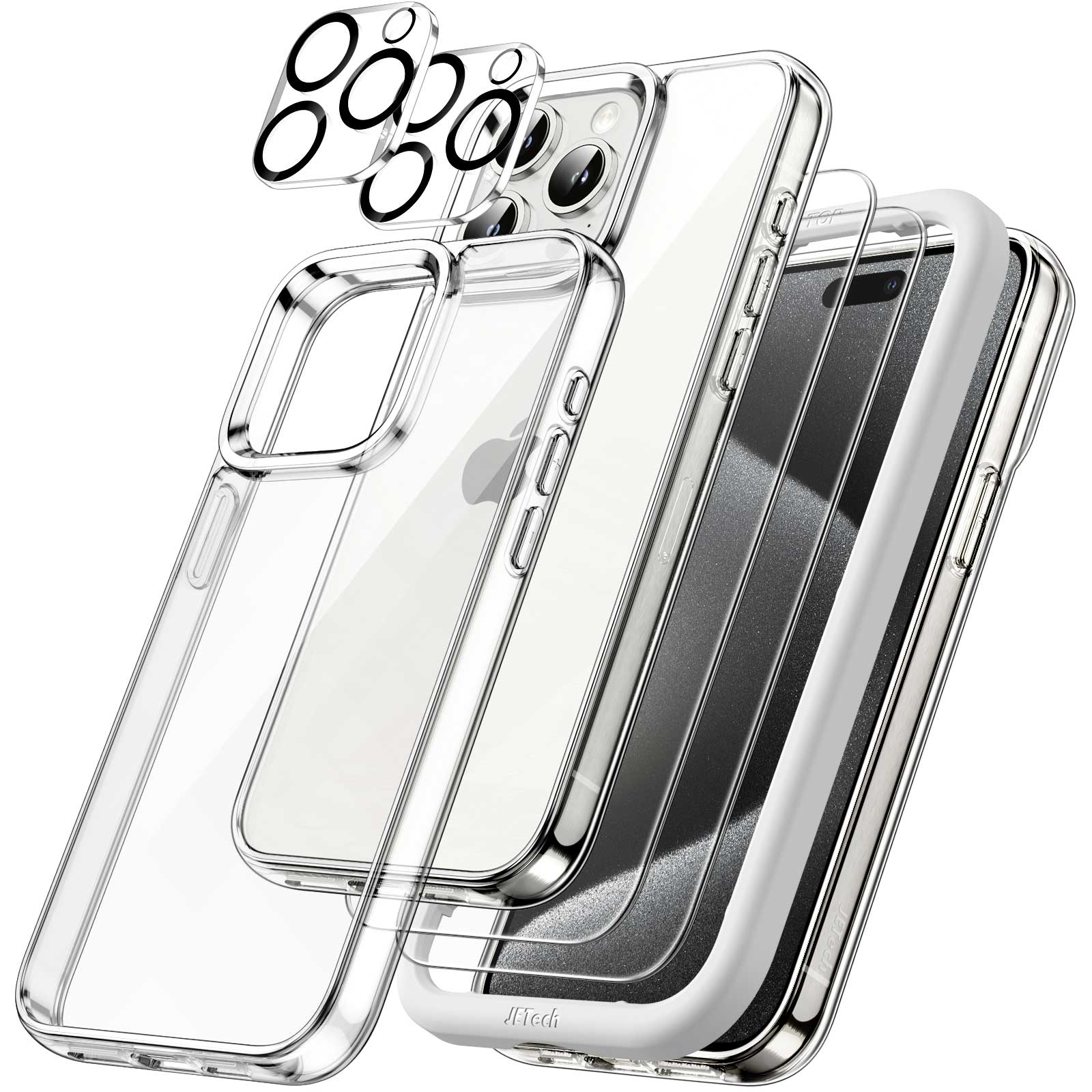 16 reviews for JETech 5 in 1 Case for iPhone 15 Pro Max 6.7-Inch with 2-Pack Each Tempered Glass Screen Protector and Camera Lens Protector, Non-Yellowing Shockproof Bumper Phone Cover