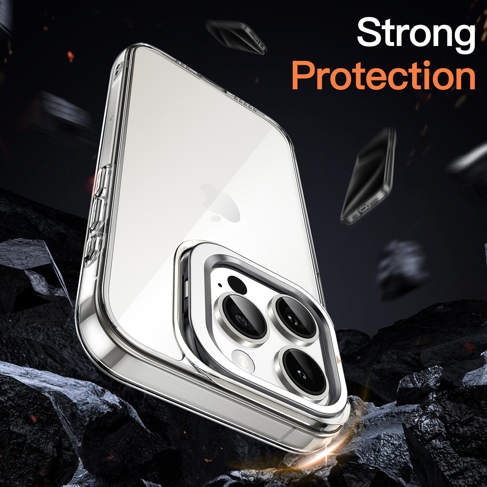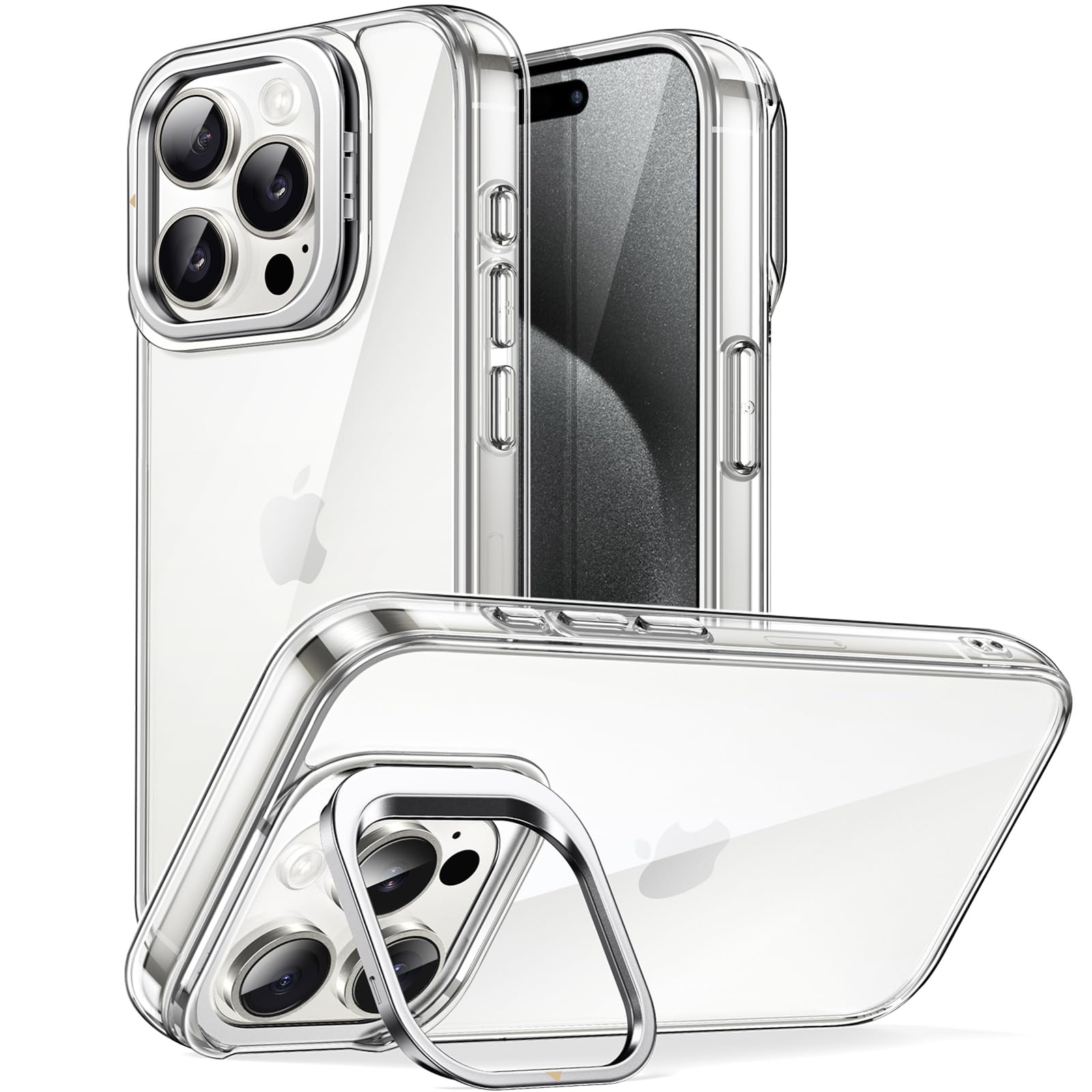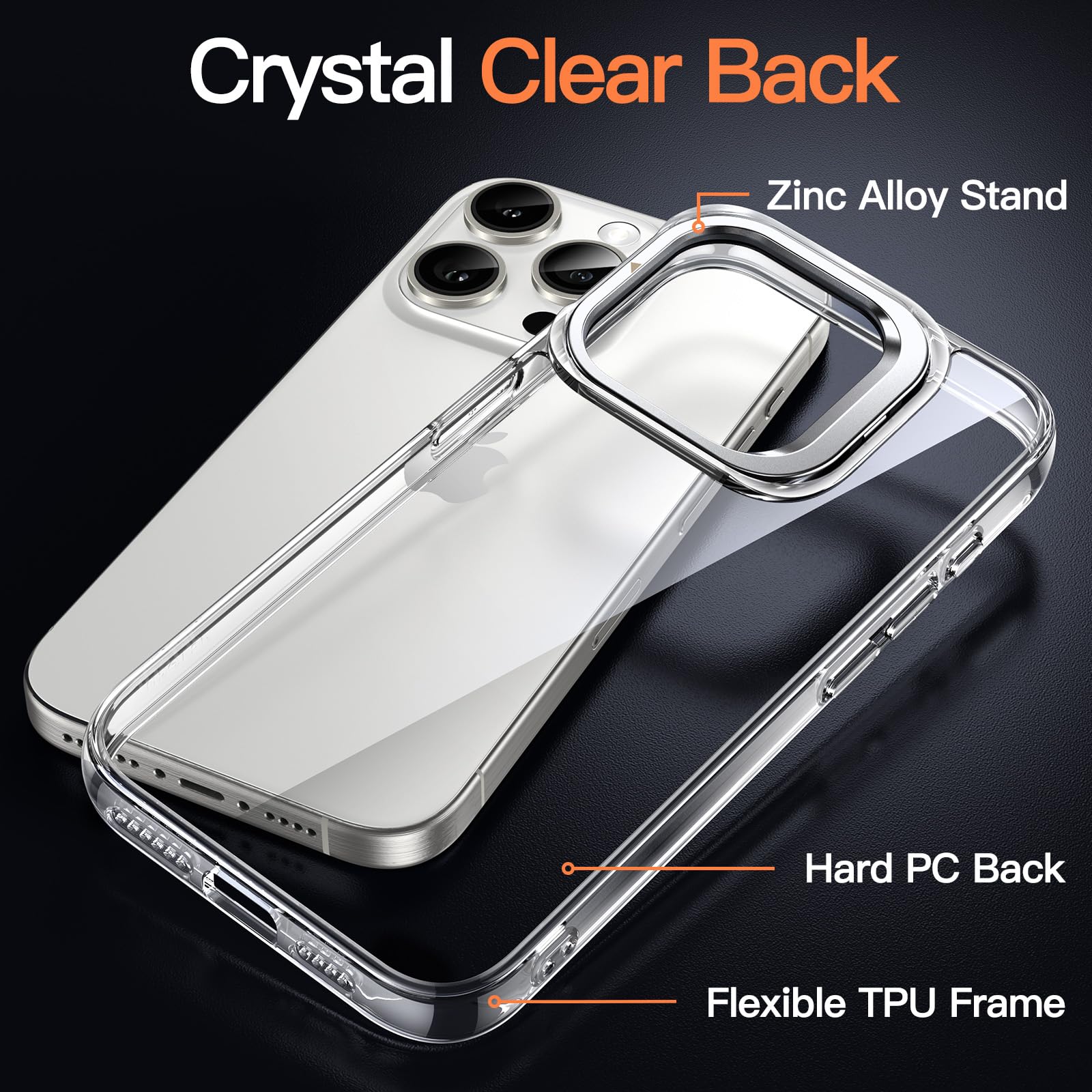 • [Built-in Stand] Especially designed for iPhone 15 Pro Max 6.7-inch. Non-yellowing clear case with built-in camera ring stand. Also support wireless charging