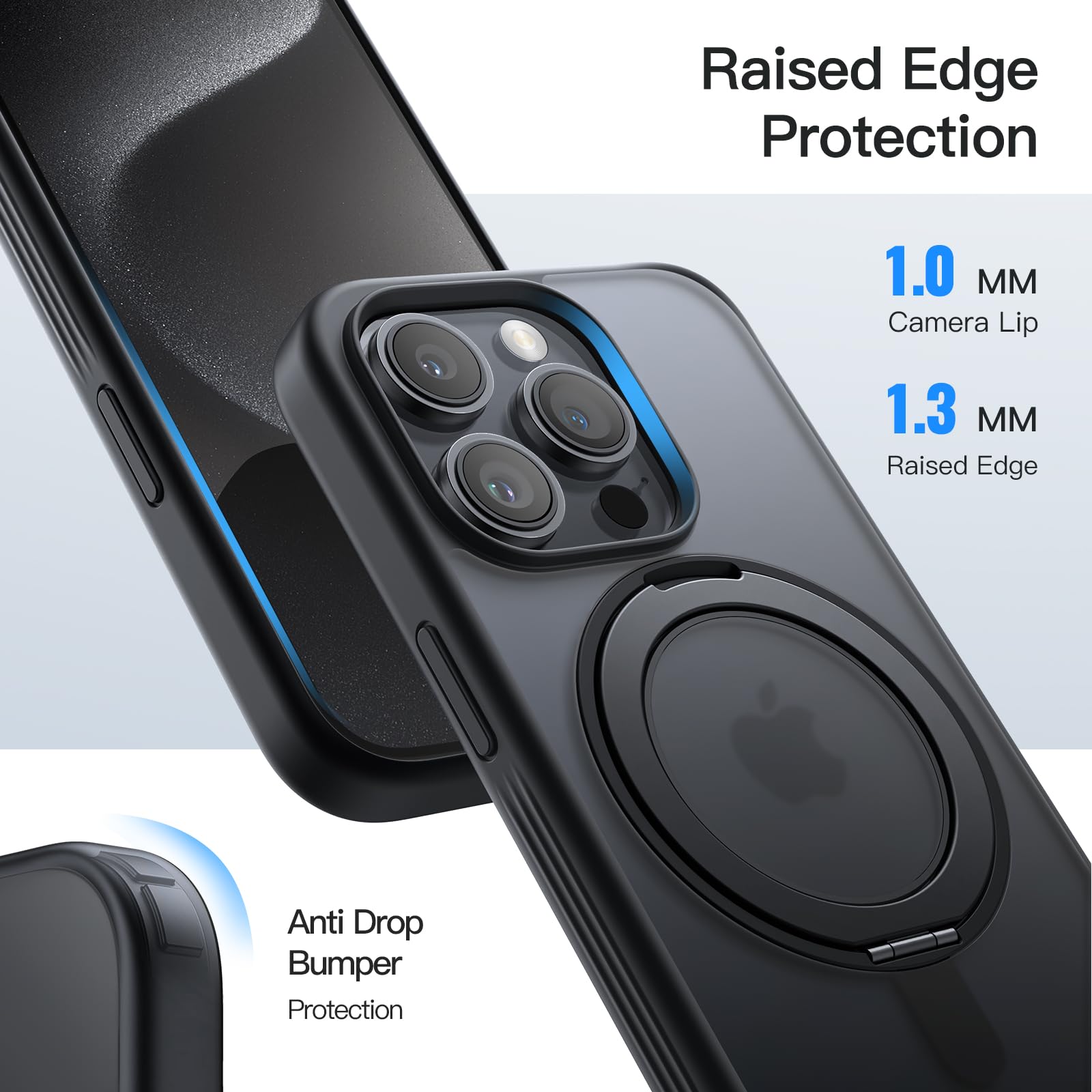 [Lasting Durability] The rotatable ring stand undergoes over 3000 open/close tests throughout the manufacturing process to provide you with quality assurance. Meanwhile, the raised edges effectively protect the screen and camera, perfectly protect your phone from daily drops and bumps